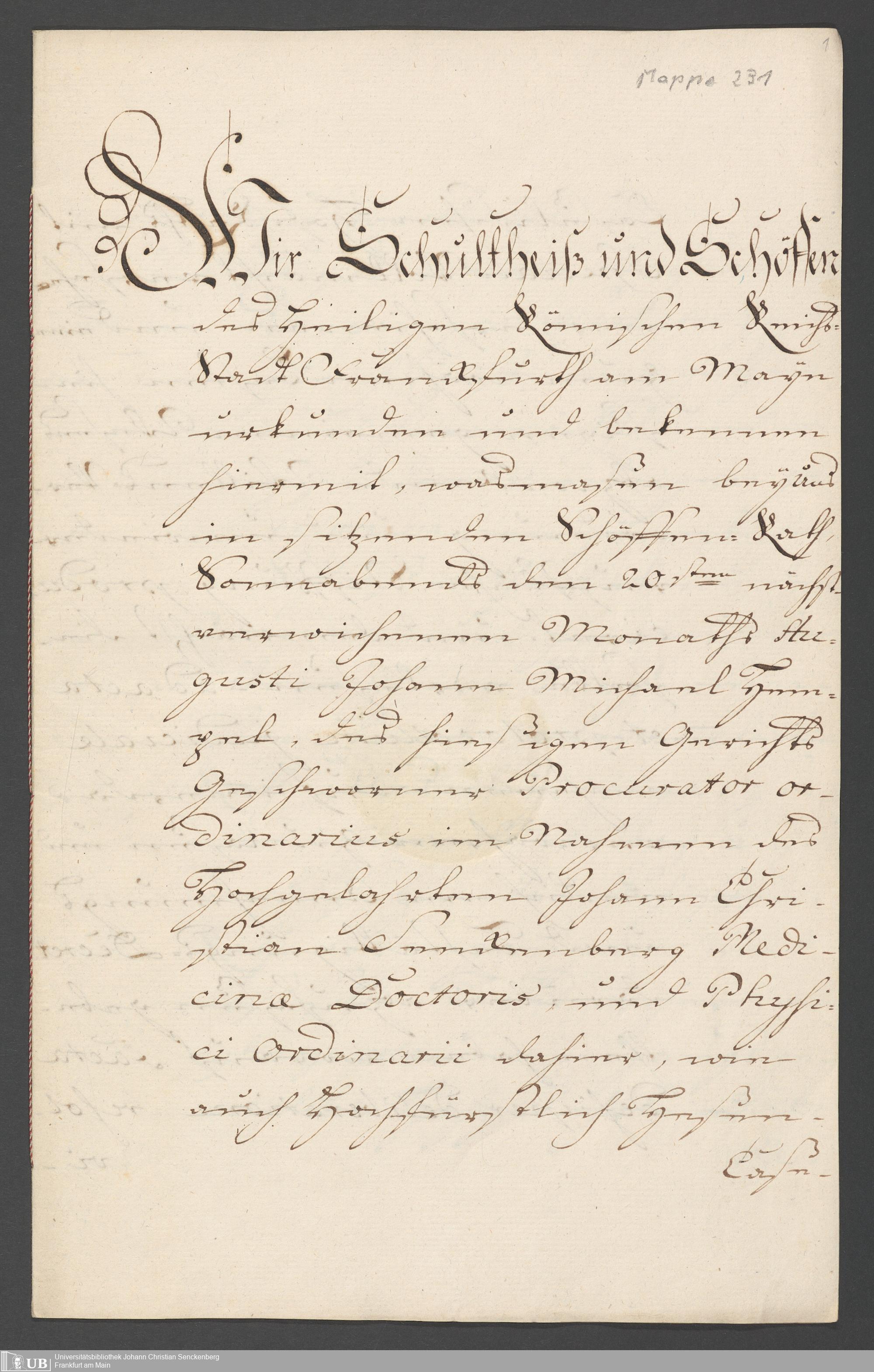 Na 31 Nachlass Johann Christian Senckenberg, 335 - Stiftungsbrief
