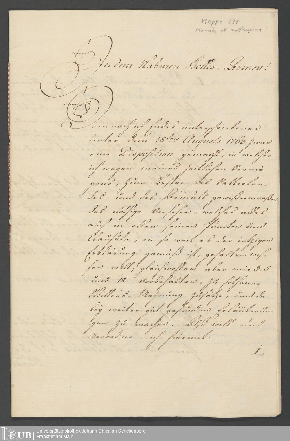 Na 31 Nachlass Johann Christian Senckenberg, 335 - Stiftungsbrief