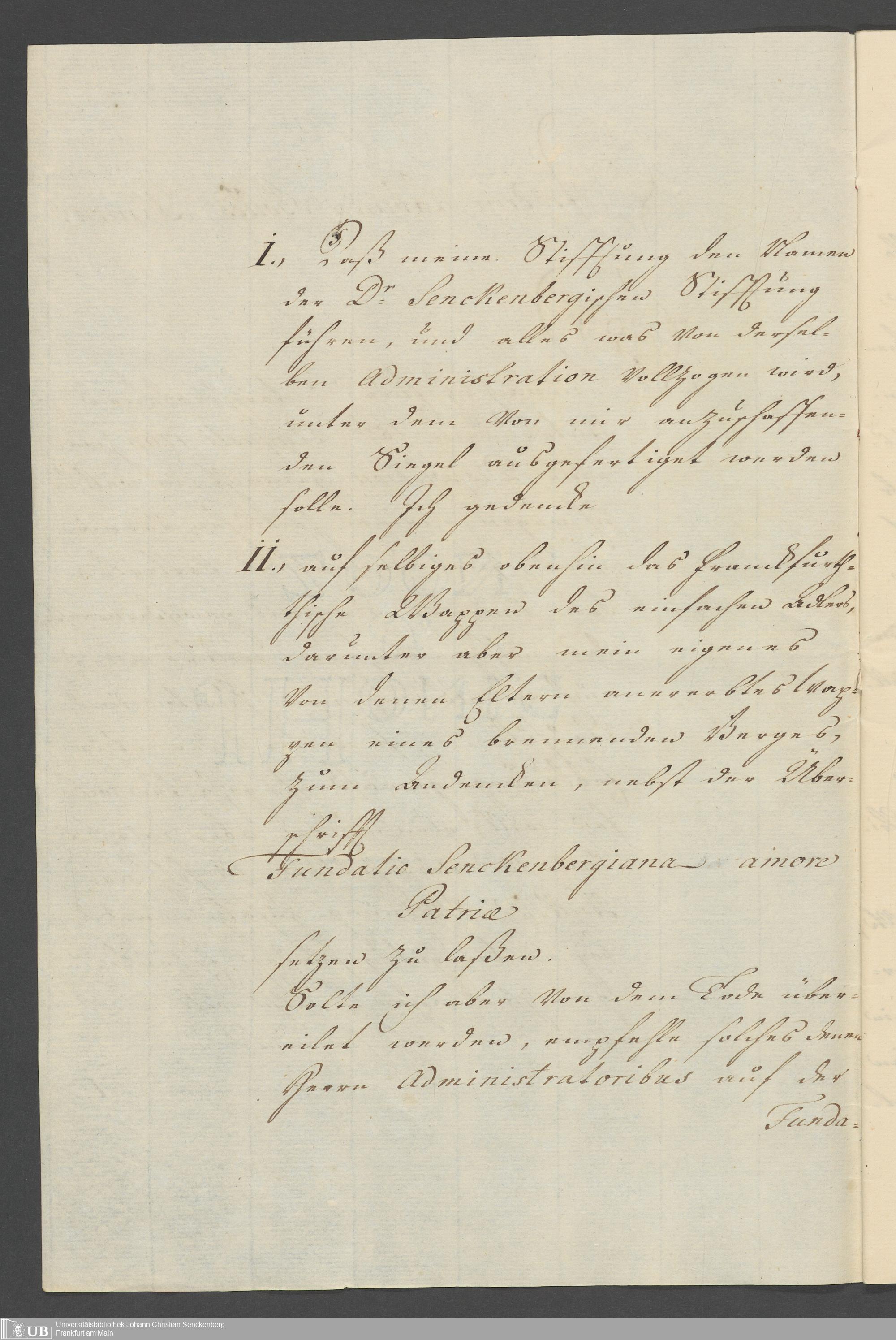 Na 31 Nachlass Johann Christian Senckenberg, 335 - Stiftungsbrief