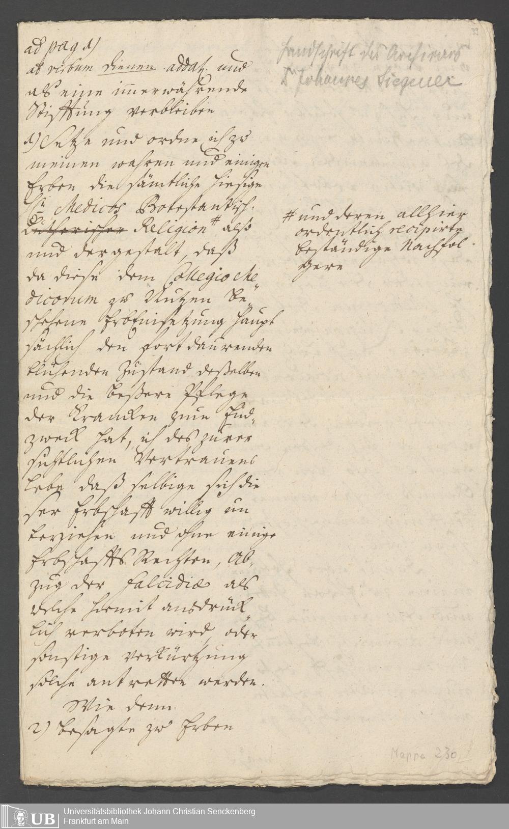 Nachlass Johann Christian Senckenberg