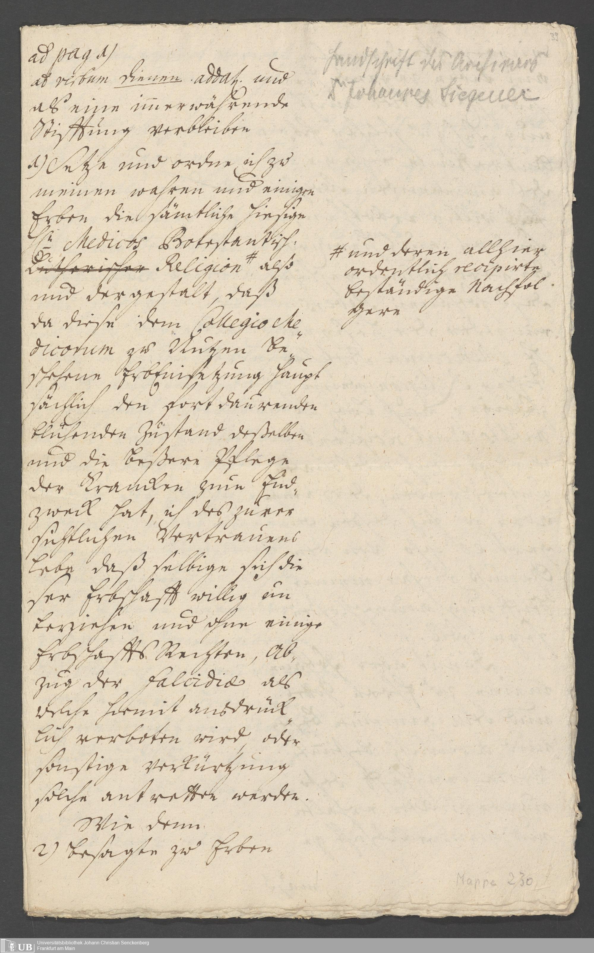 Na 31 Nachlass Johann Christian Senckenberg, 335 - Stiftungsbrief