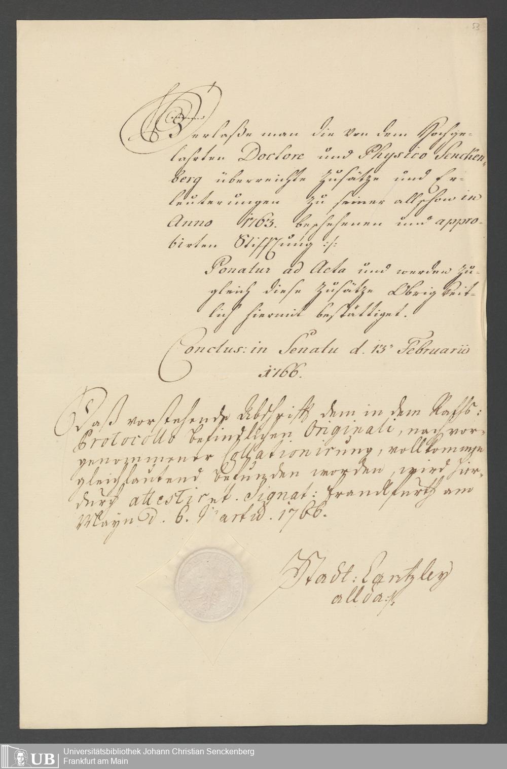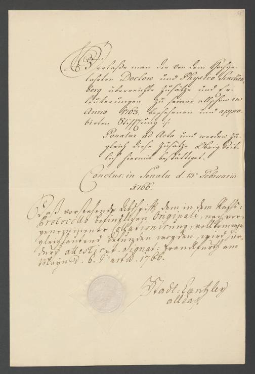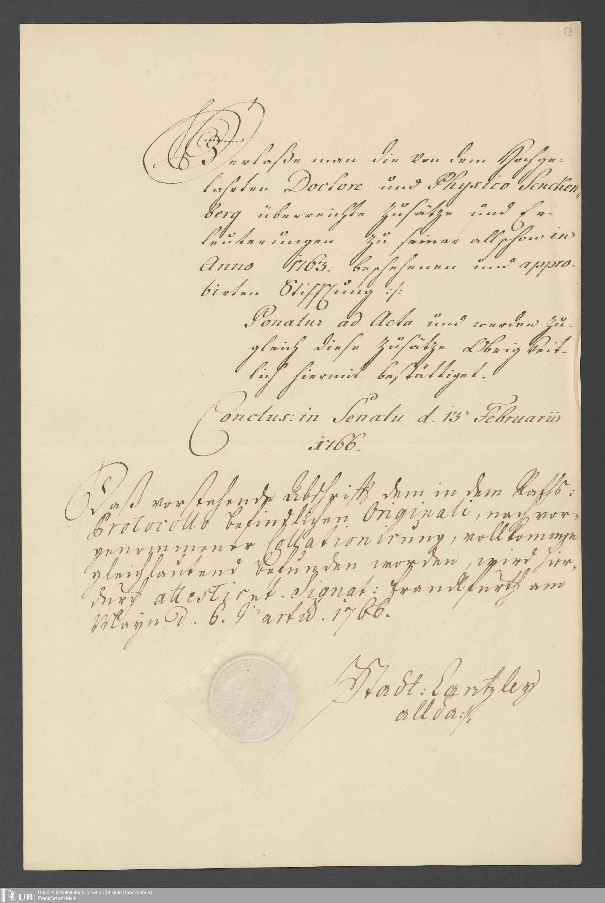 Na 31 Nachlass Johann Christian Senckenberg, 335 - Stiftungsbrief