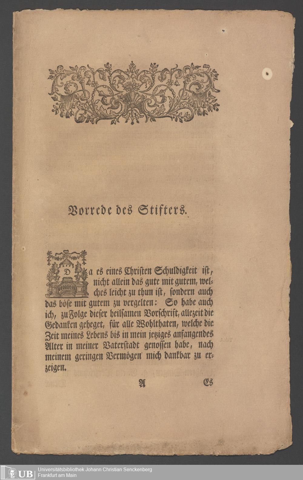 Na 31 Nachlass Johann Christian Senckenberg, 336 - Stiftungsbrief