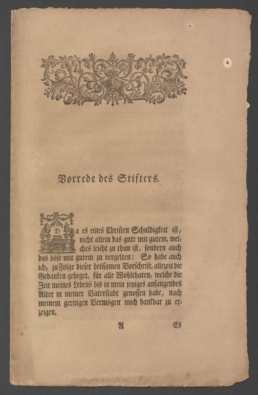 Stiftungs-Briefe zum Besten der Artzneykunst und Armenpflege ; samt Nachricht wegen eines zu unternehmenden Bürger- und Beysassen-Hospitals zum Behufe der Stadt Frankfurt ; nebst Vorbericht Renat Leopold Christian Carl Freyherrn von Senckenberg;