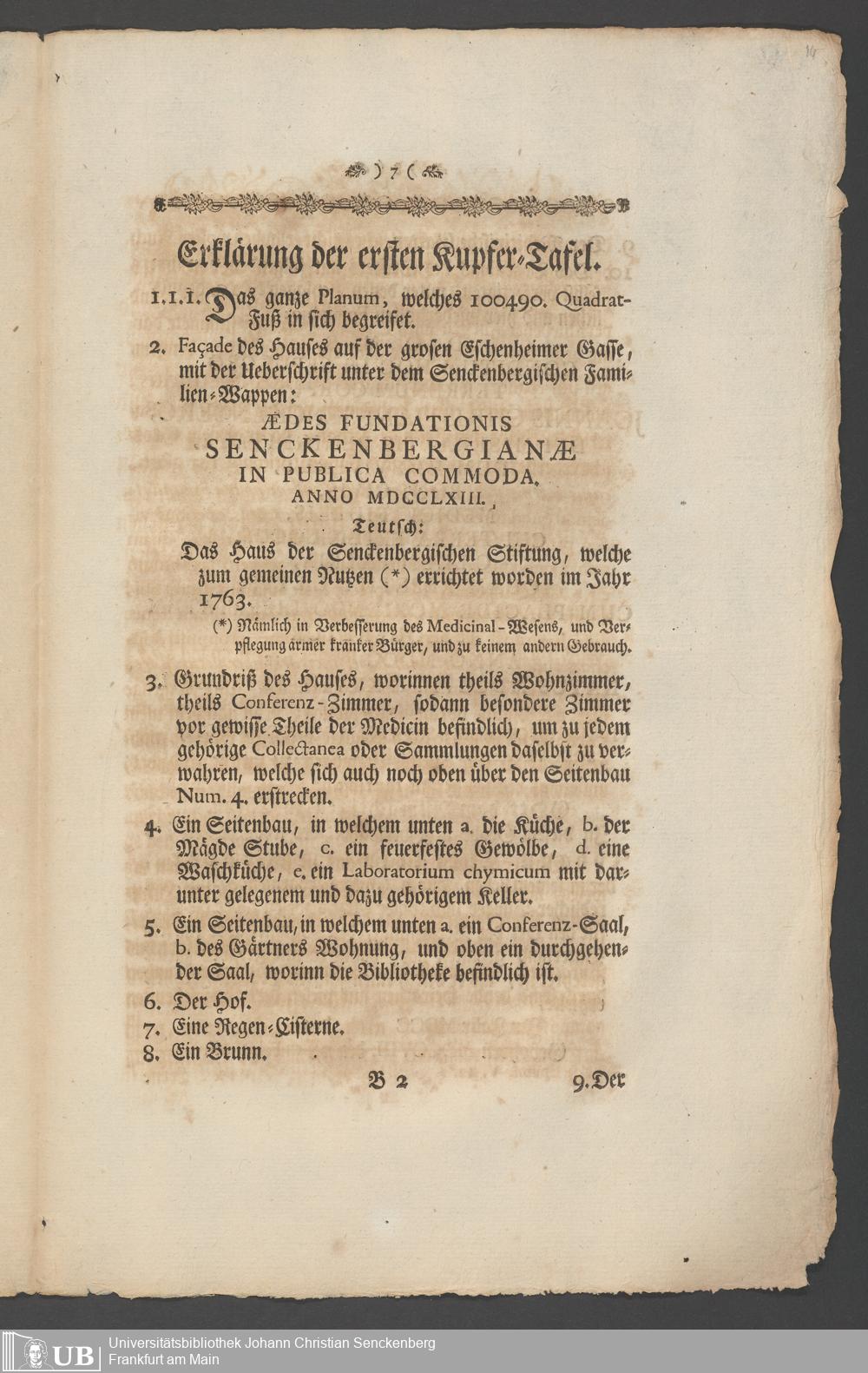 Stiftungs-Briefe zum Besten der Artzneykunst und Armenpflege ; samt Nachricht wegen eines zu unternehmenden Bürger- und Beysassen-Hospitals zum Behufe der Stadt Frankfurt ; nebst Vorbericht Renat Leopold Christian Carl Freyherrn von Senckenberg;