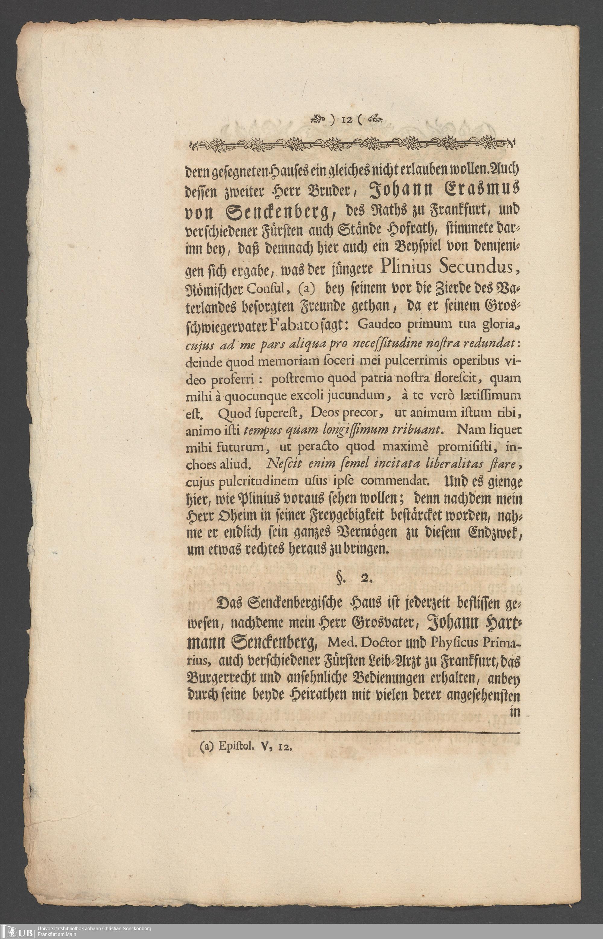 Nachlass Johann Christian Senckenberg
