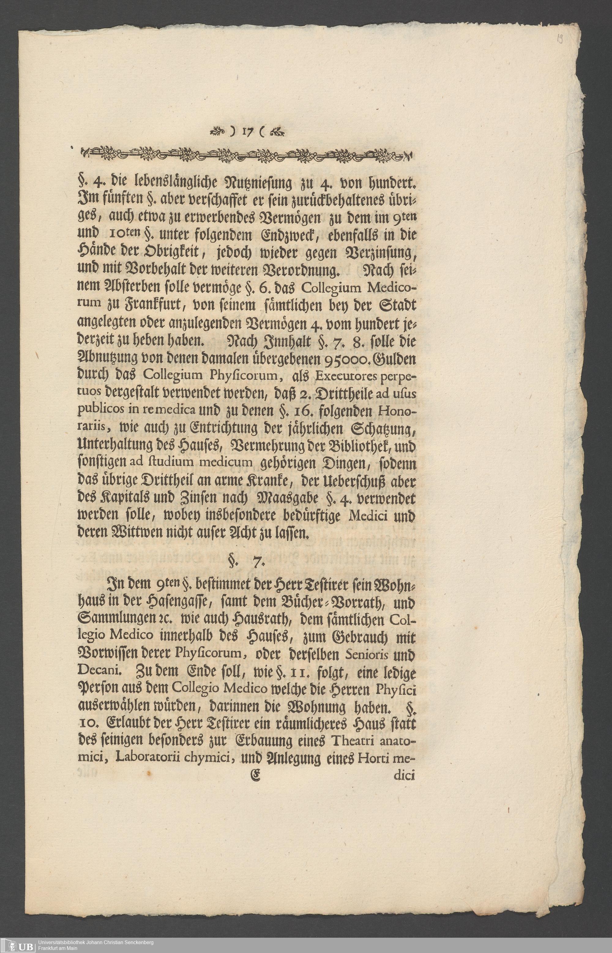 Na 31 Nachlass Johann Christian Senckenberg, 336 - Stiftungsbrief