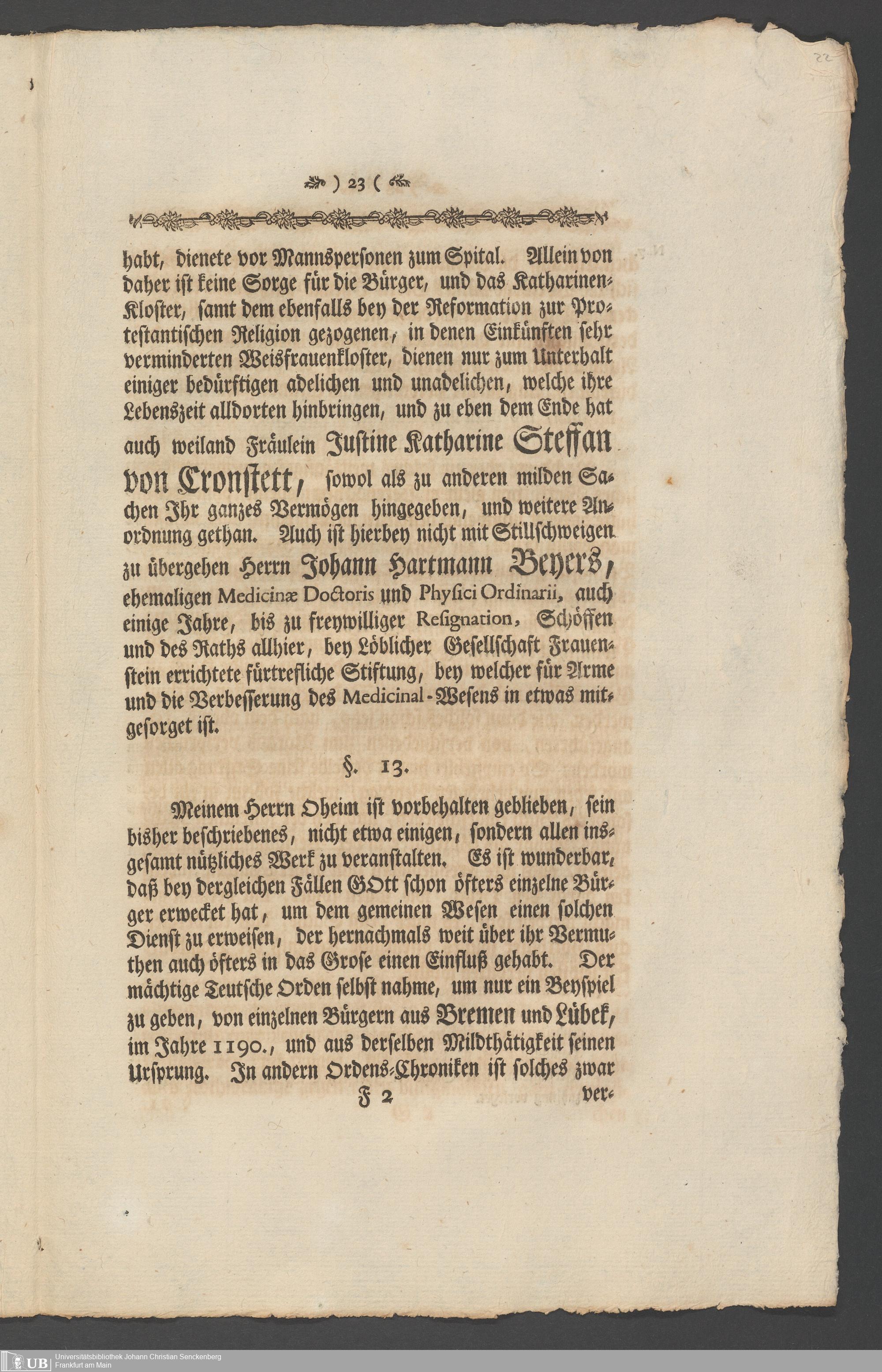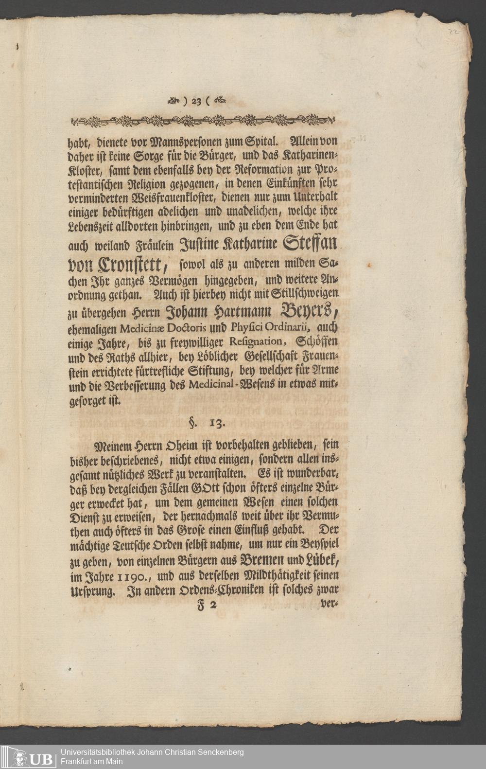 Na 31 Nachlass Johann Christian Senckenberg, 336 - Stiftungsbrief