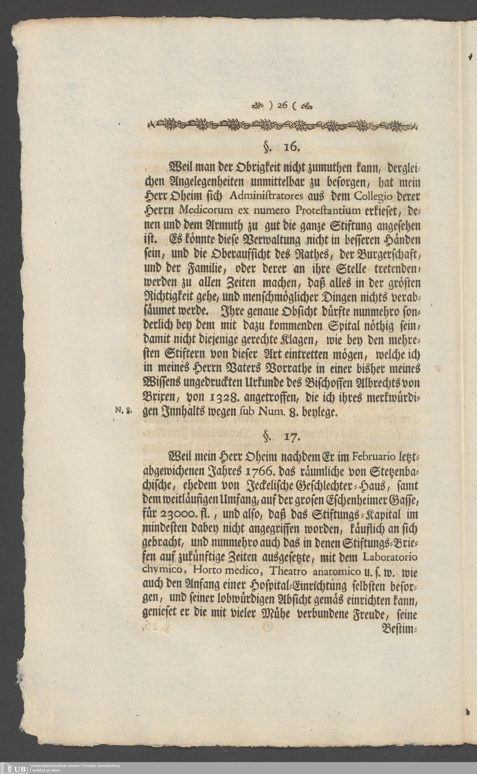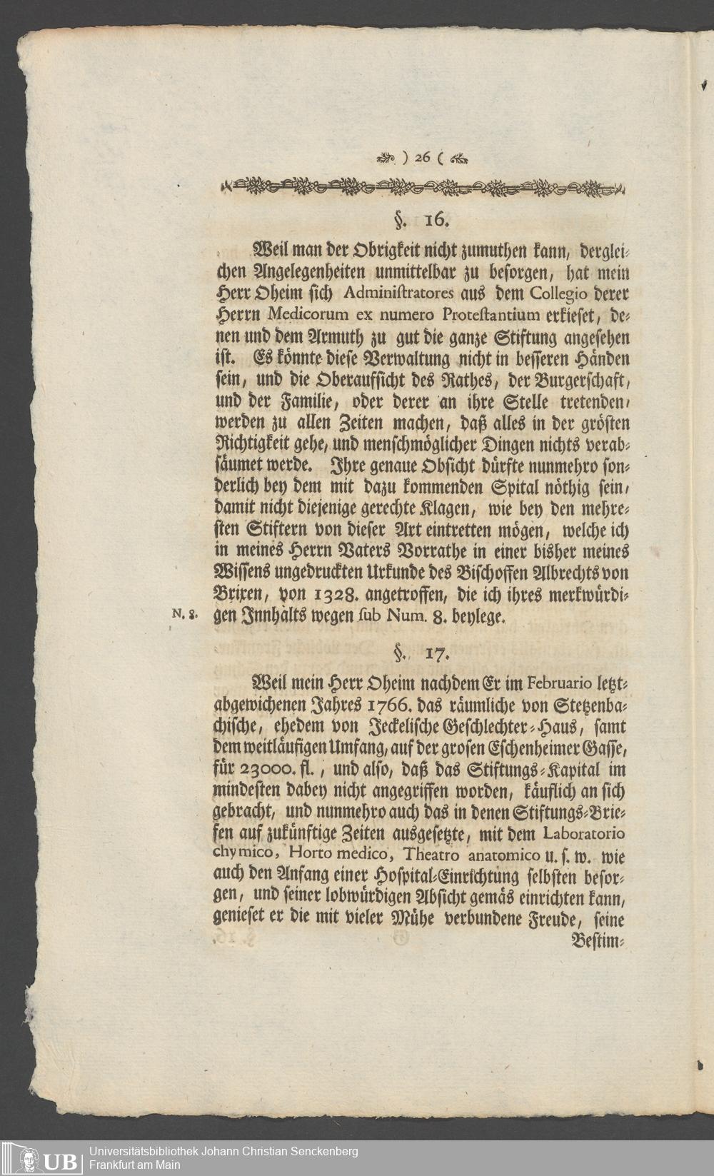 Na 31 Nachlass Johann Christian Senckenberg, 336 - Stiftungsbrief