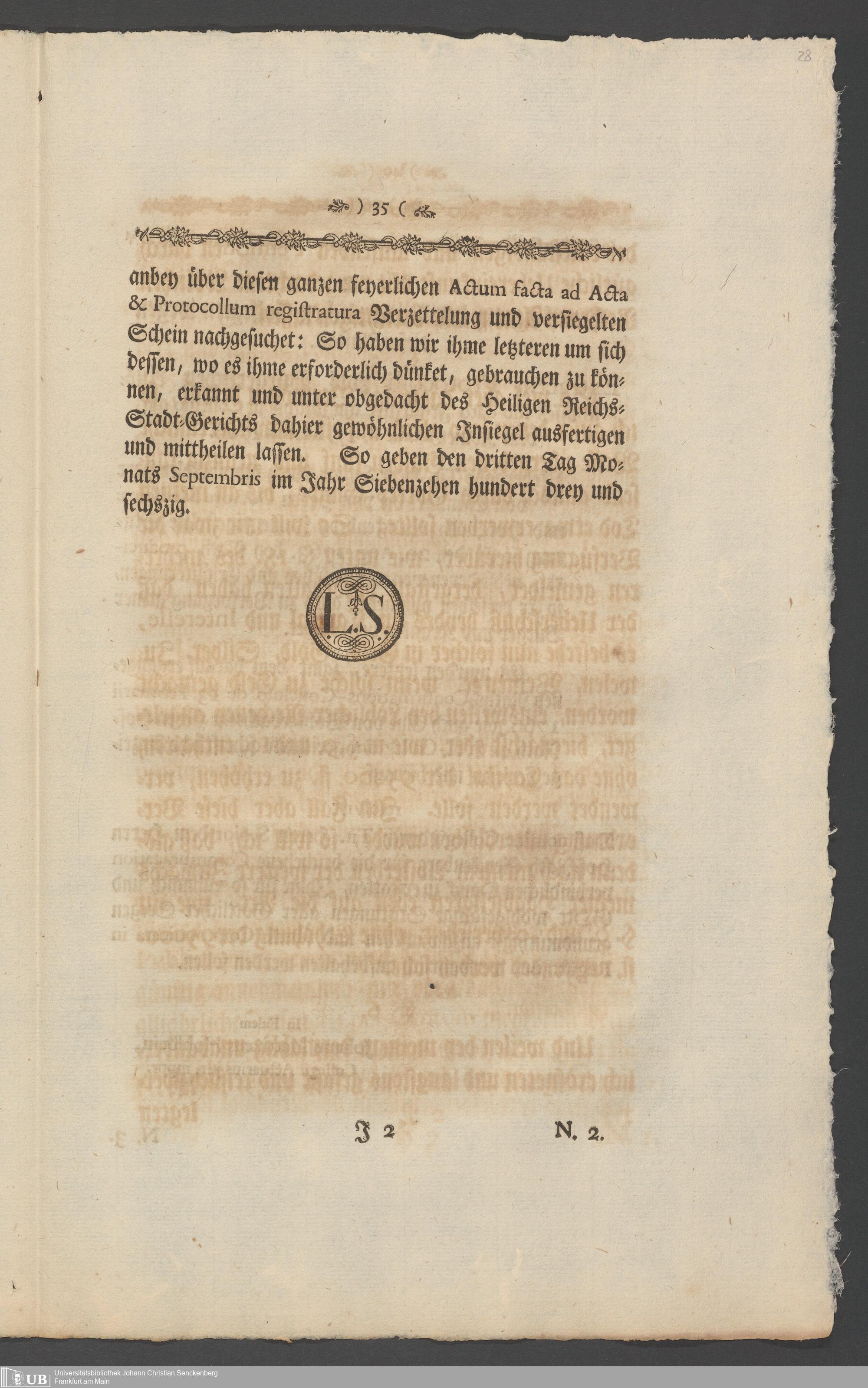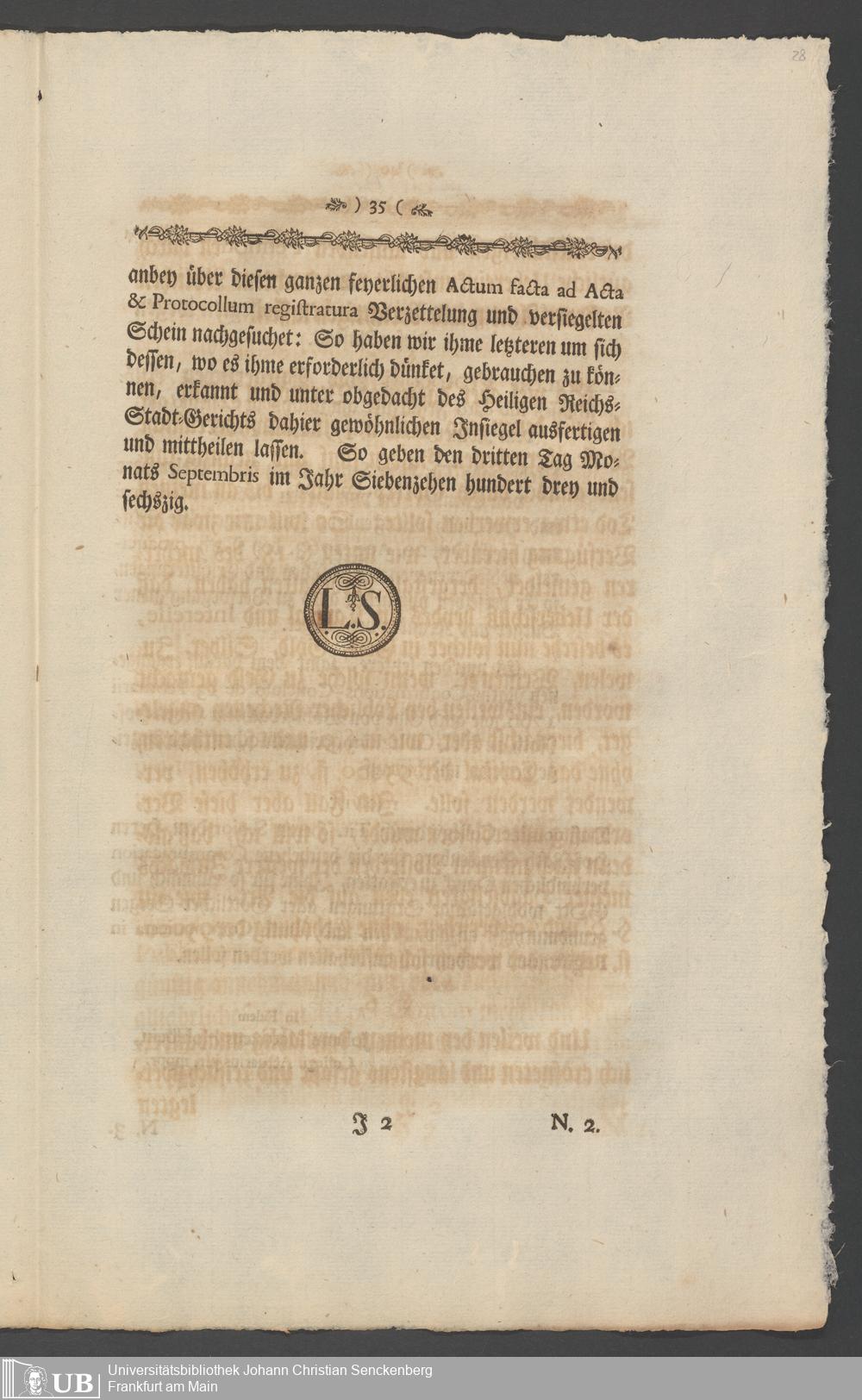 Na 31 Nachlass Johann Christian Senckenberg, 336 - Stiftungsbrief