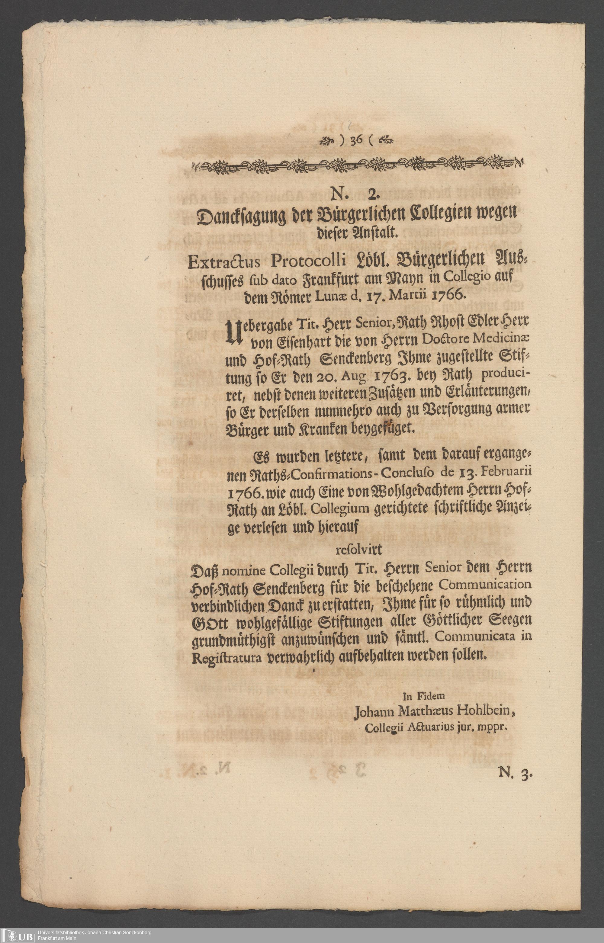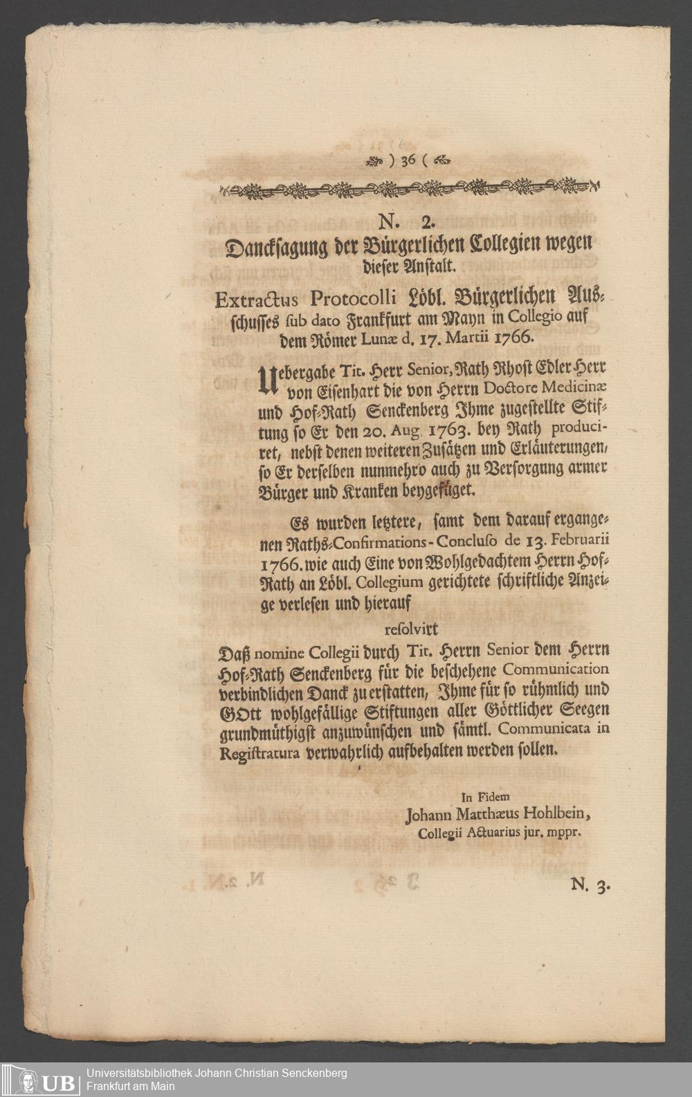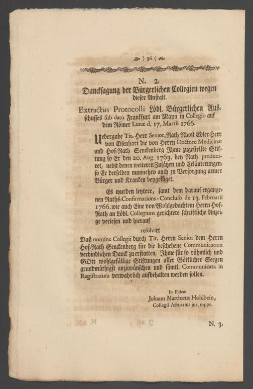 Na 31 Nachlass Johann Christian Senckenberg, 336 - Stiftungsbrief