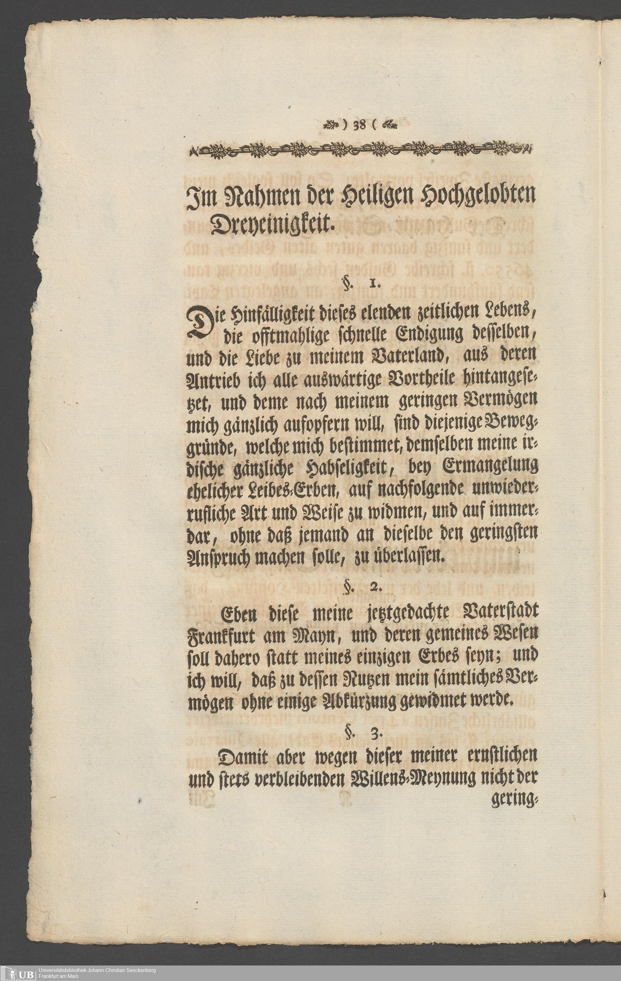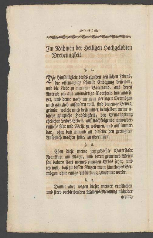 Na 31 Nachlass Johann Christian Senckenberg, 336 - Stiftungsbrief