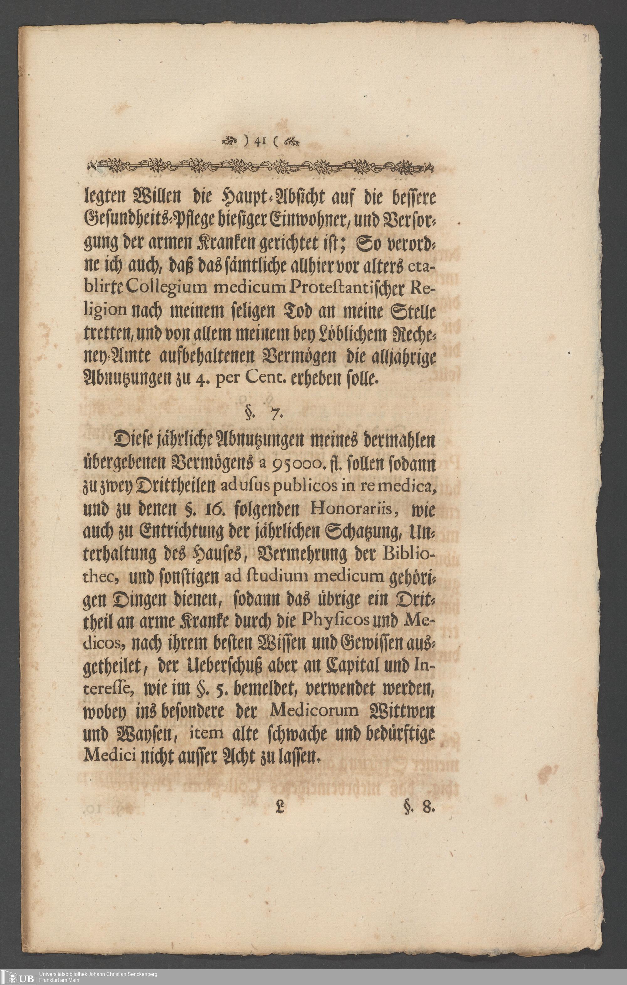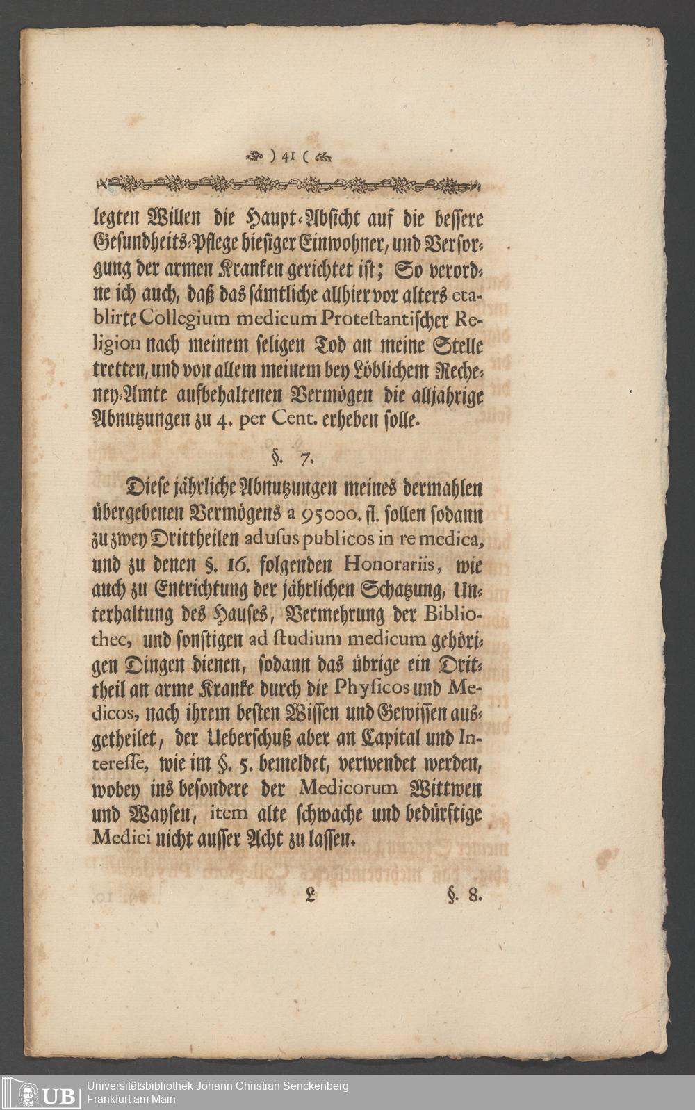 Na 31 Nachlass Johann Christian Senckenberg, 336 - Stiftungsbrief