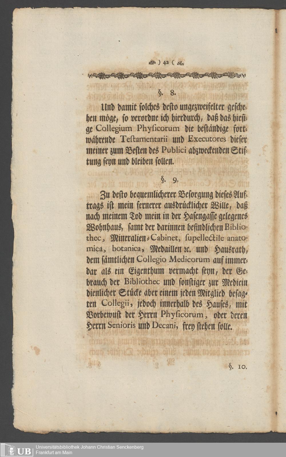 Na 31 Nachlass Johann Christian Senckenberg, 336 - Stiftungsbrief