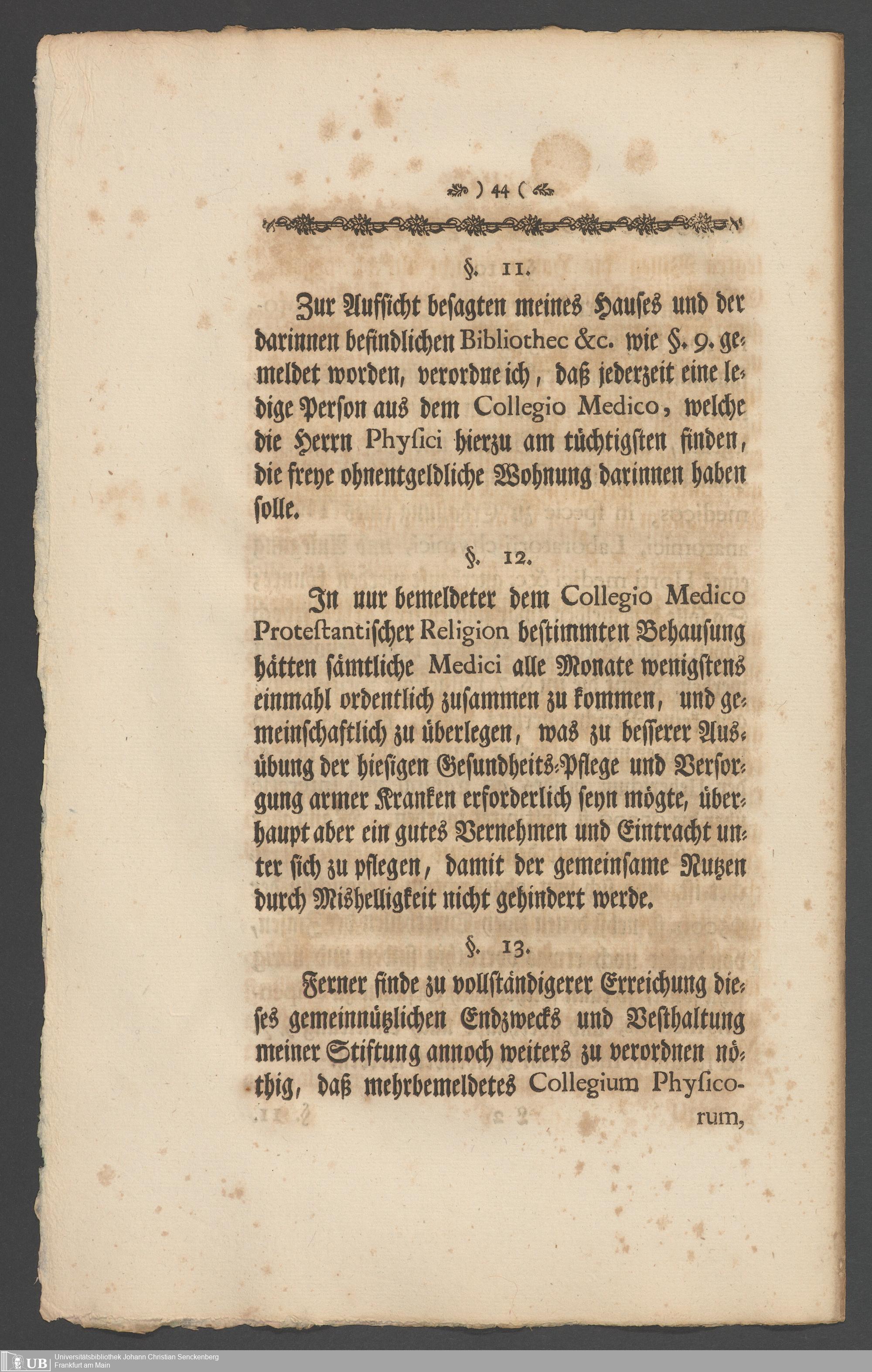 Na 31 Nachlass Johann Christian Senckenberg, 336 - Stiftungsbrief
