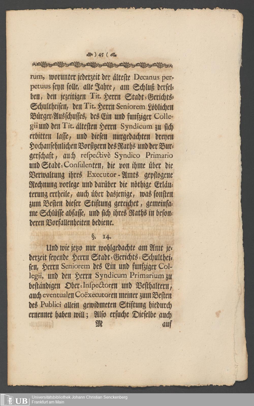 Na 31 Nachlass Johann Christian Senckenberg, 336 - Stiftungsbrief