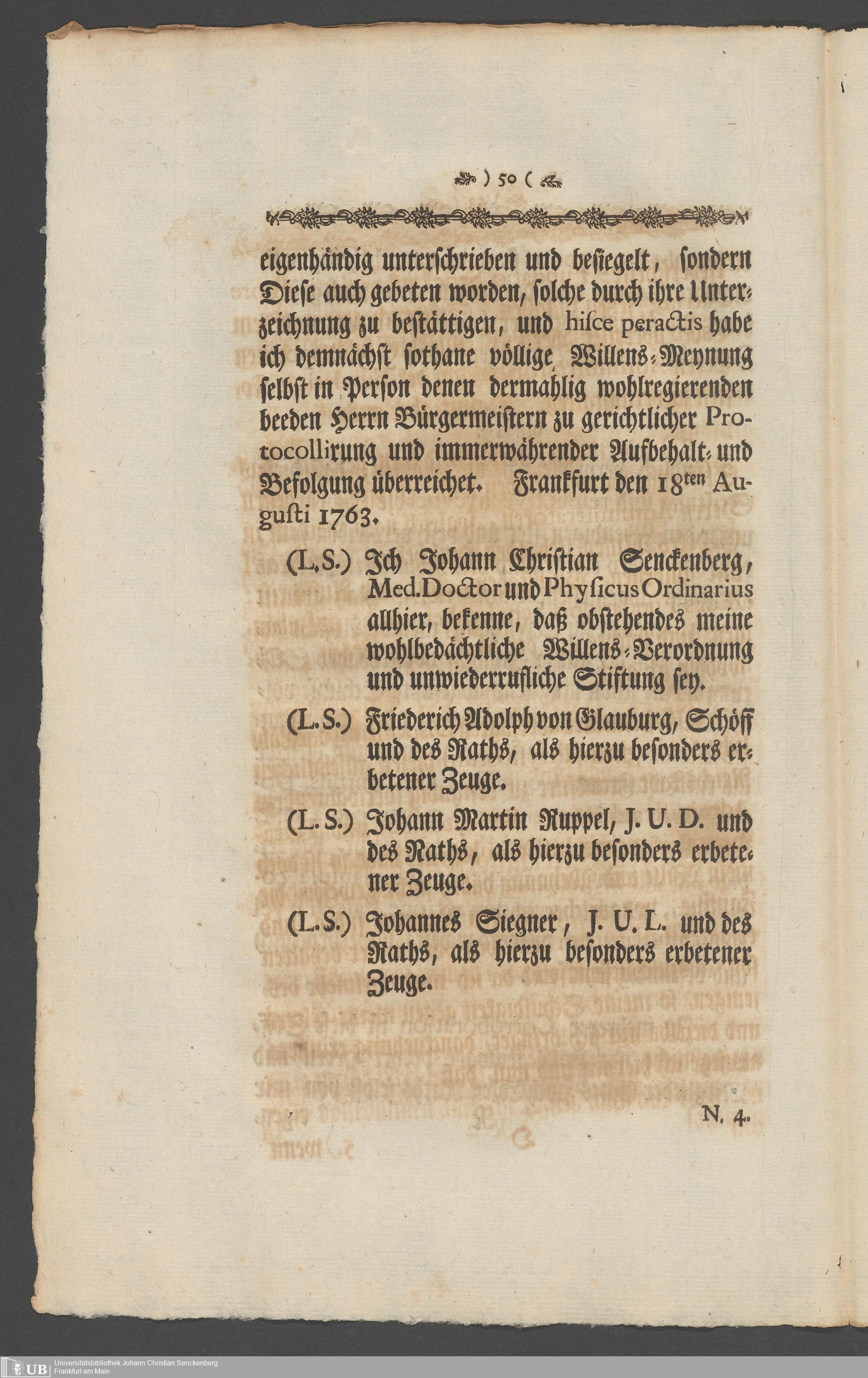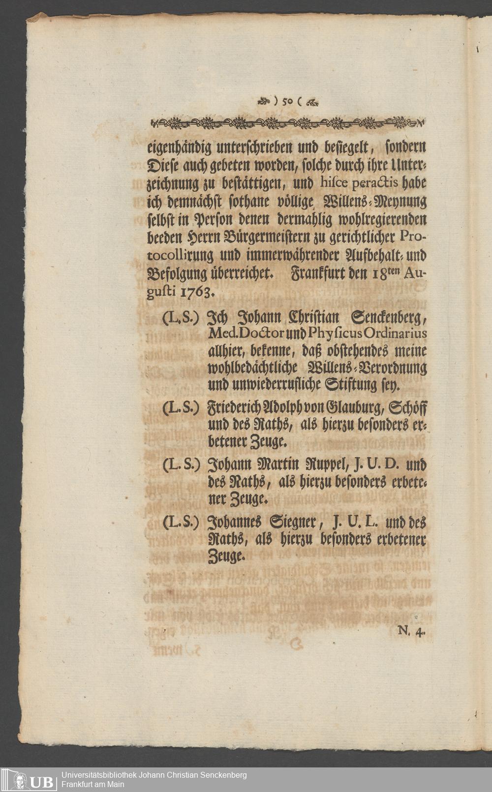 Na 31 Nachlass Johann Christian Senckenberg, 336 - Stiftungsbrief