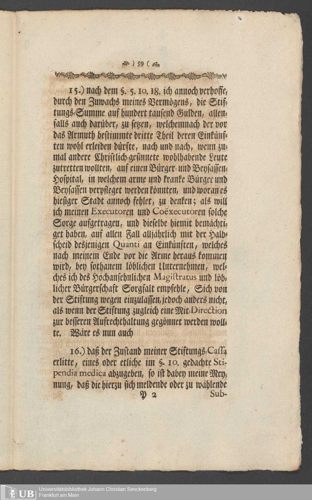 Na 31 Nachlass Johann Christian Senckenberg, 336 - Stiftungsbrief