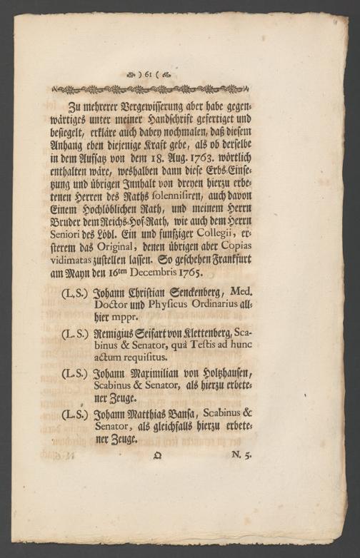 Na 31 Nachlass Johann Christian Senckenberg, 336 - Stiftungsbrief