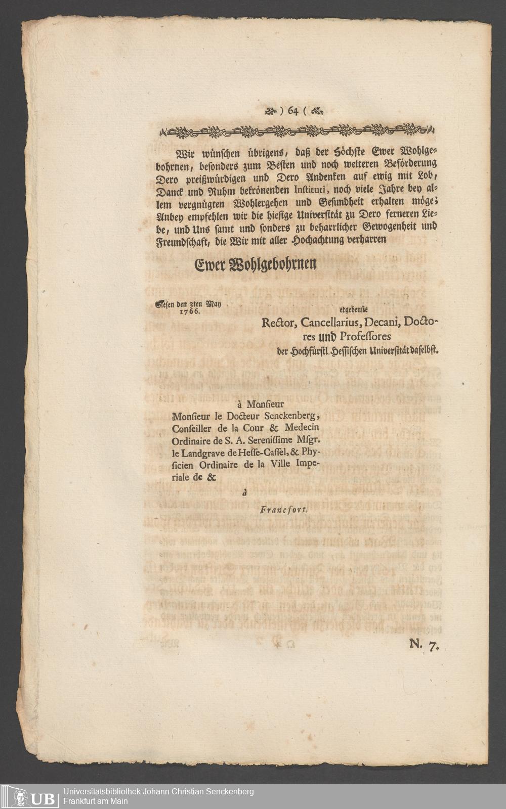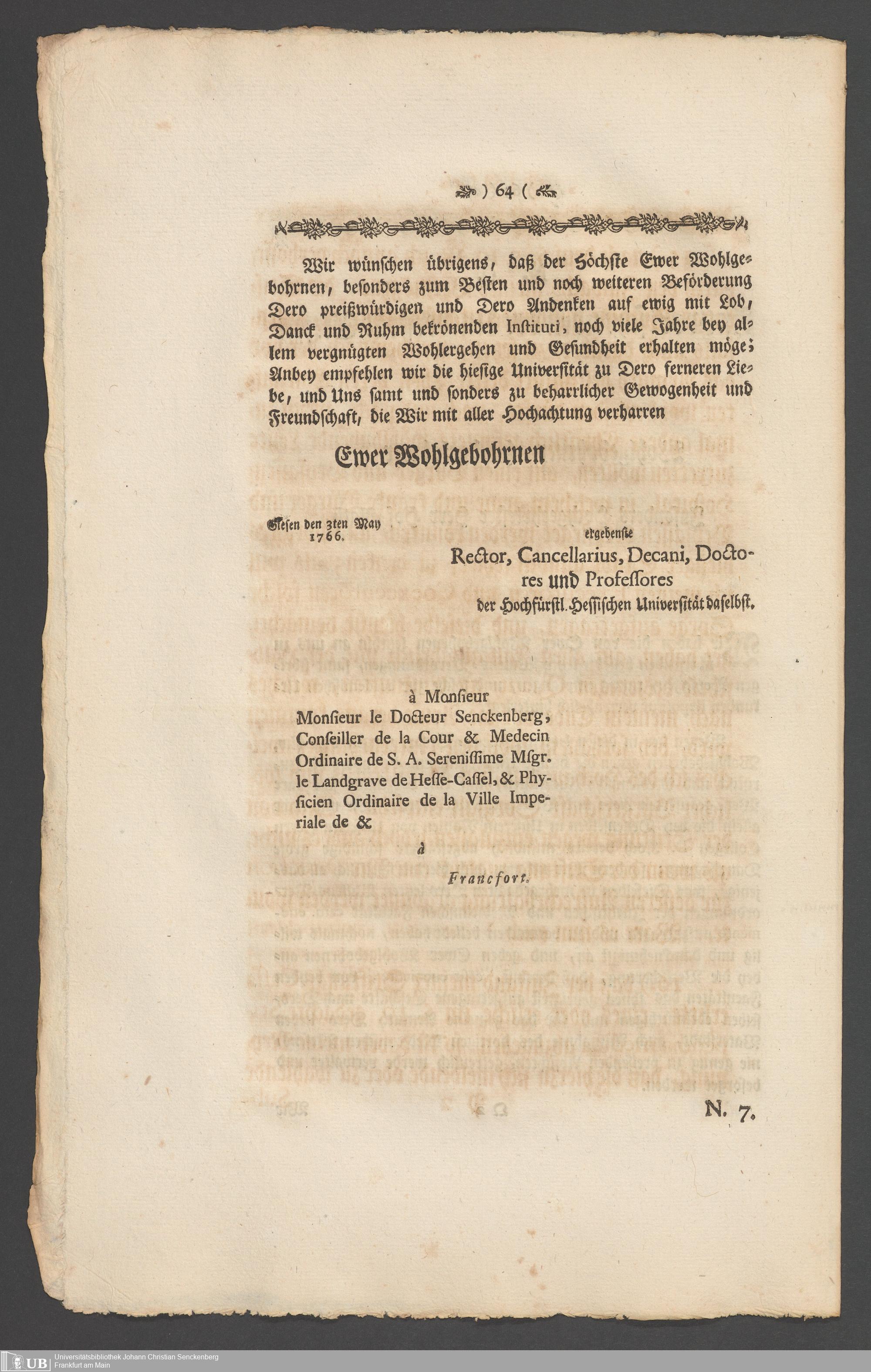 Na 31 Nachlass Johann Christian Senckenberg, 336 - Stiftungsbrief