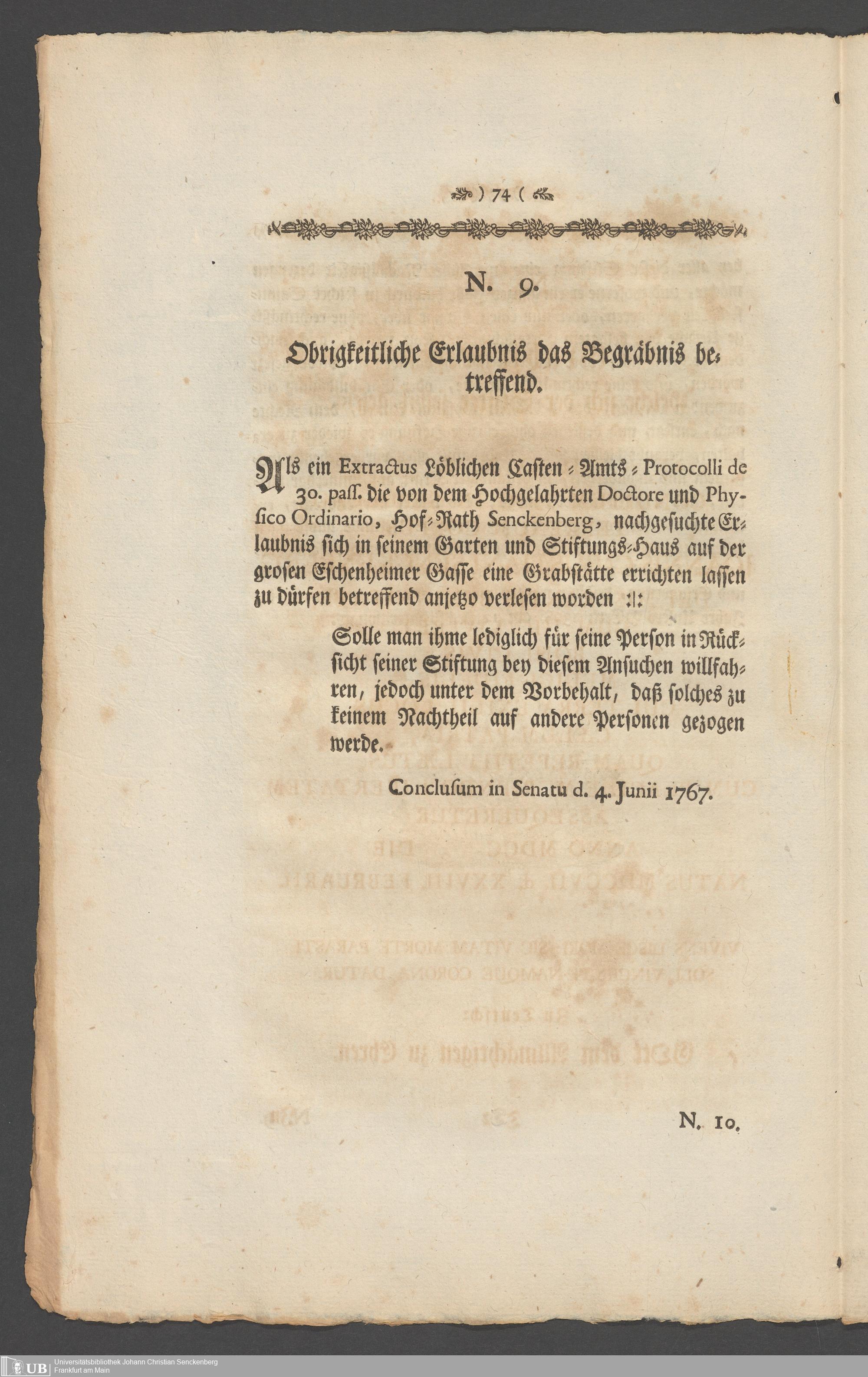 Na 31 Nachlass Johann Christian Senckenberg, 336 - Stiftungsbrief