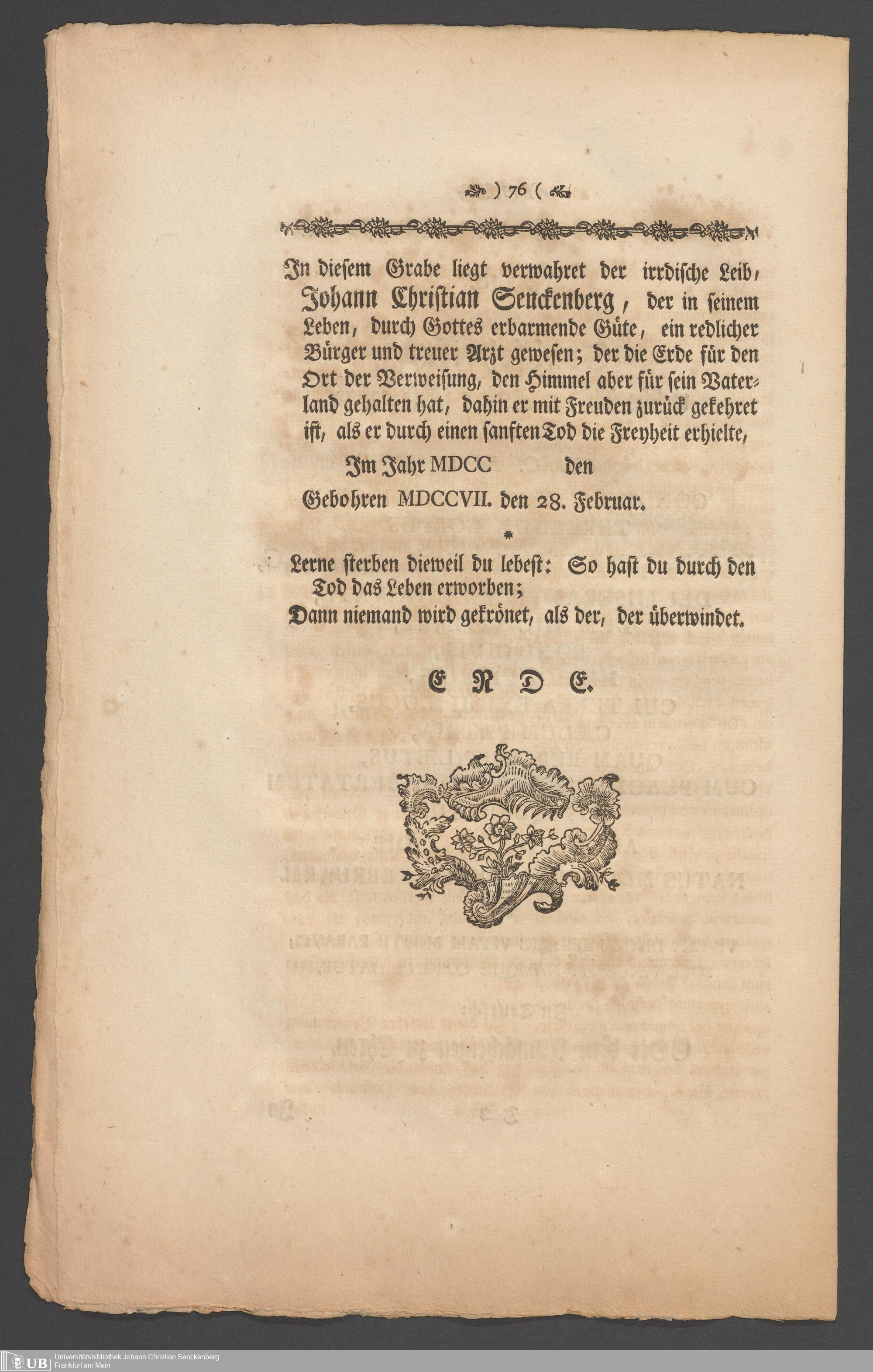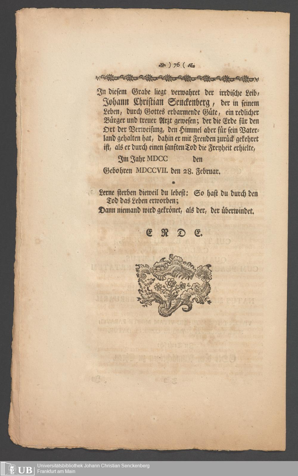 Nachlass Johann Christian Senckenberg