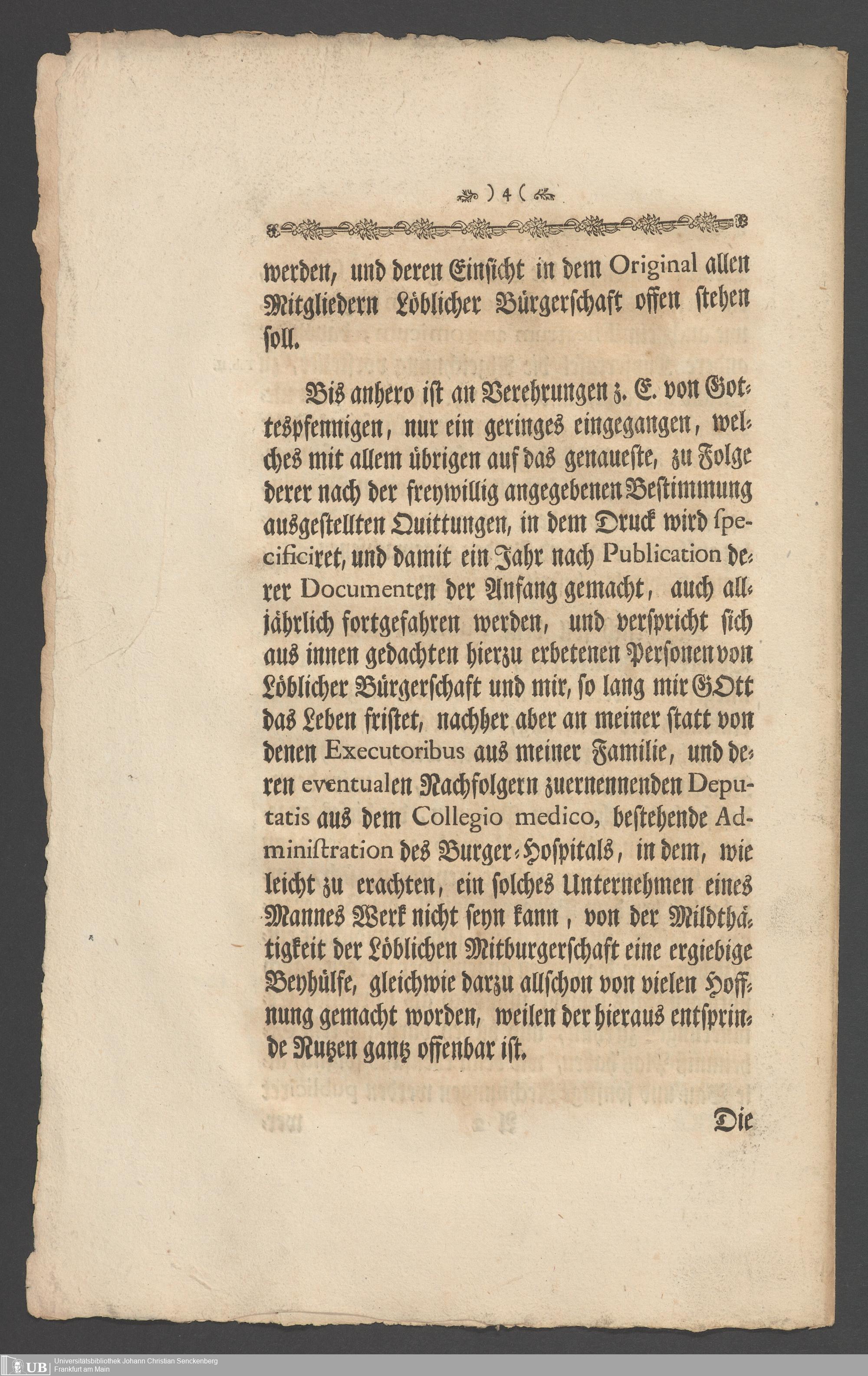 Stiftungs-Briefe zum Besten der Artzneykunst und Armenpflege ; samt Nachricht wegen eines zu unternehmenden Bürger- und Beysassen-Hospitals zum Behufe der Stadt Frankfurt ; nebst Vorbericht Renat Leopold Christian Carl Freyherrn von Senckenberg;