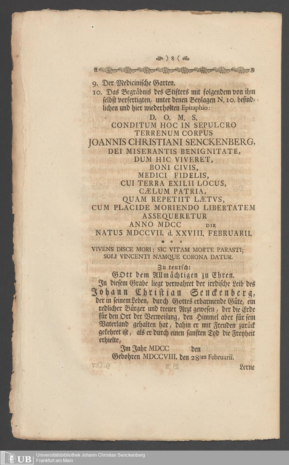 Nachlass Johann Christian Senckenberg
