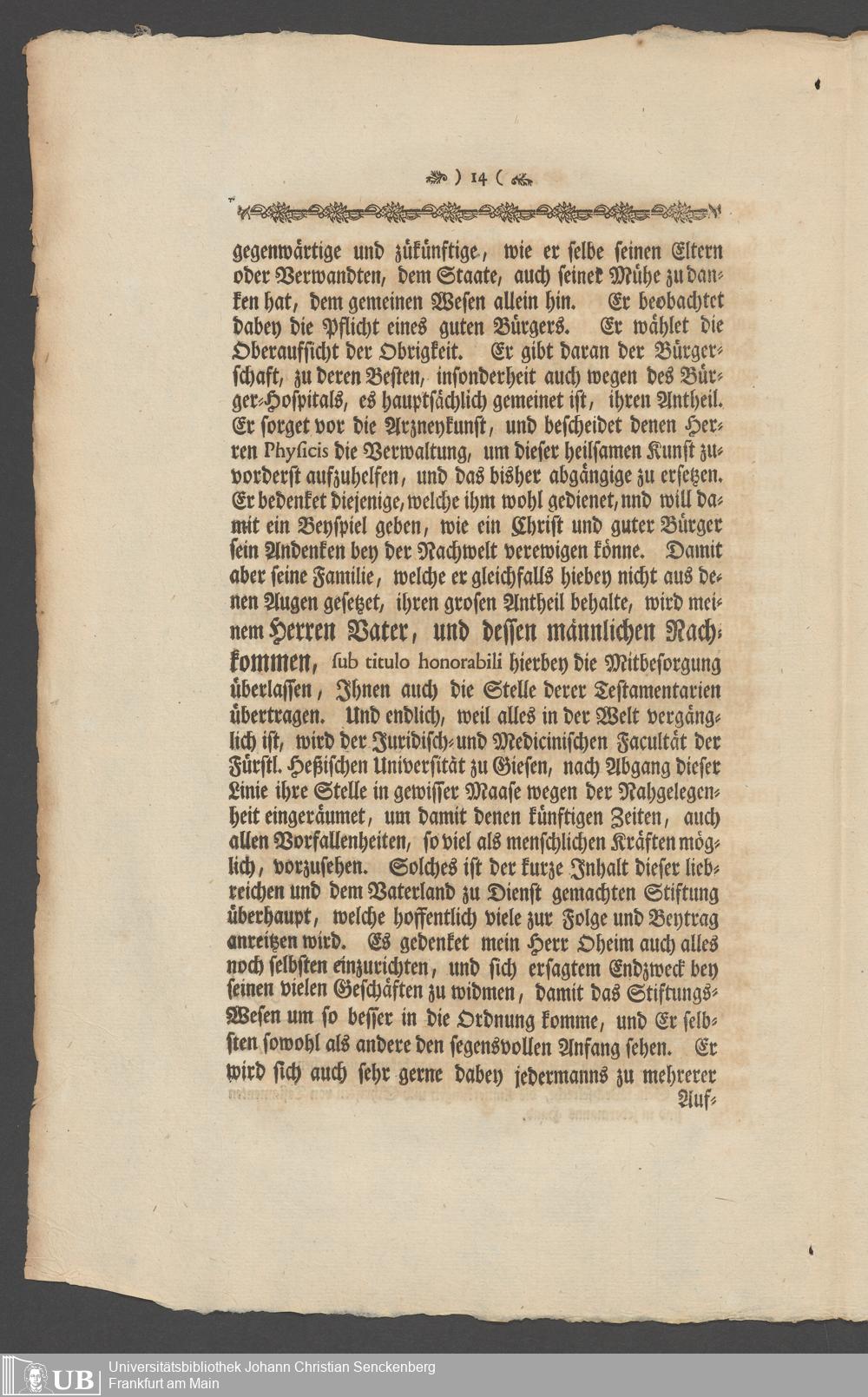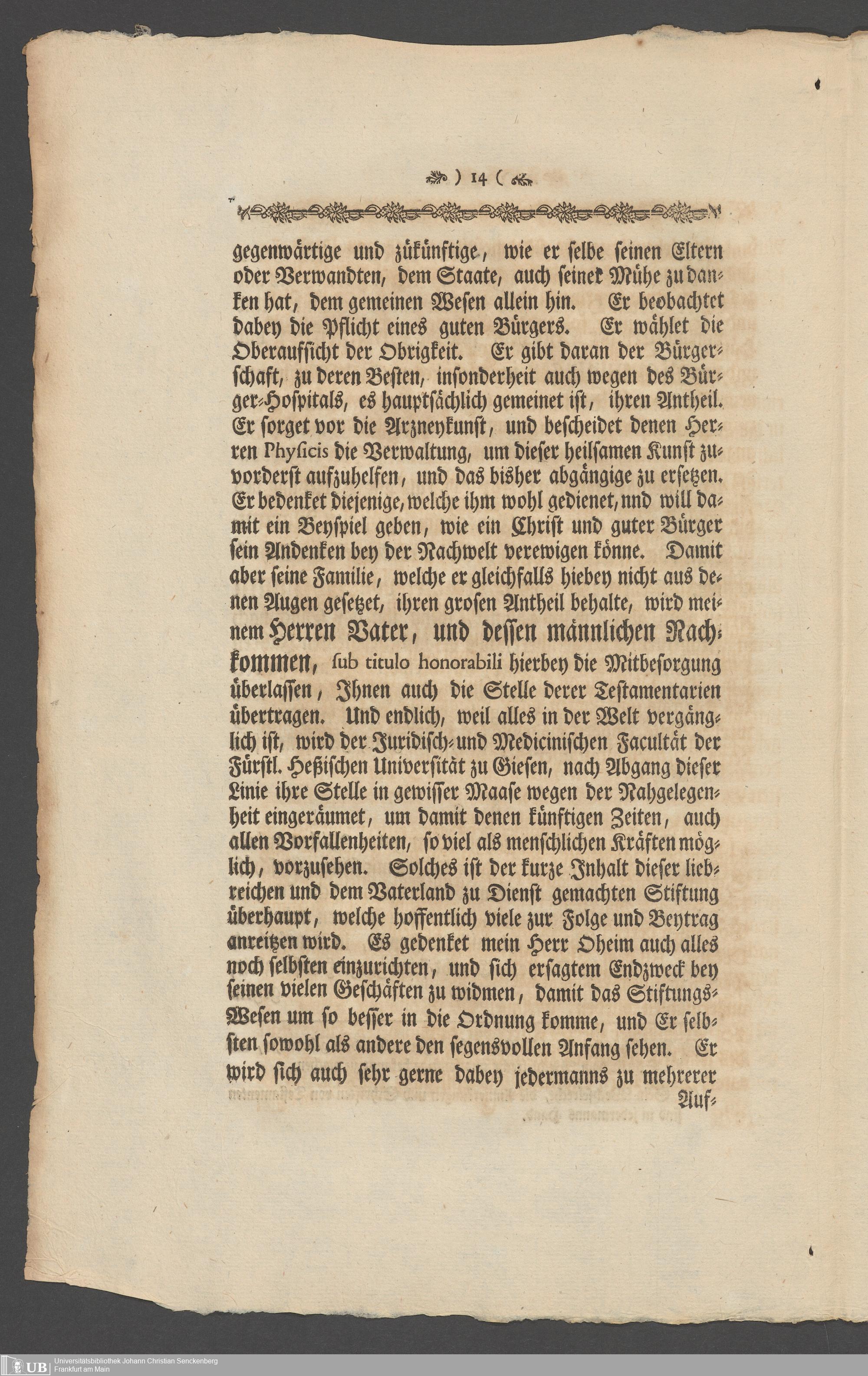Na 31 Nachlass Johann Christian Senckenberg, 336 - Stiftungsbrief