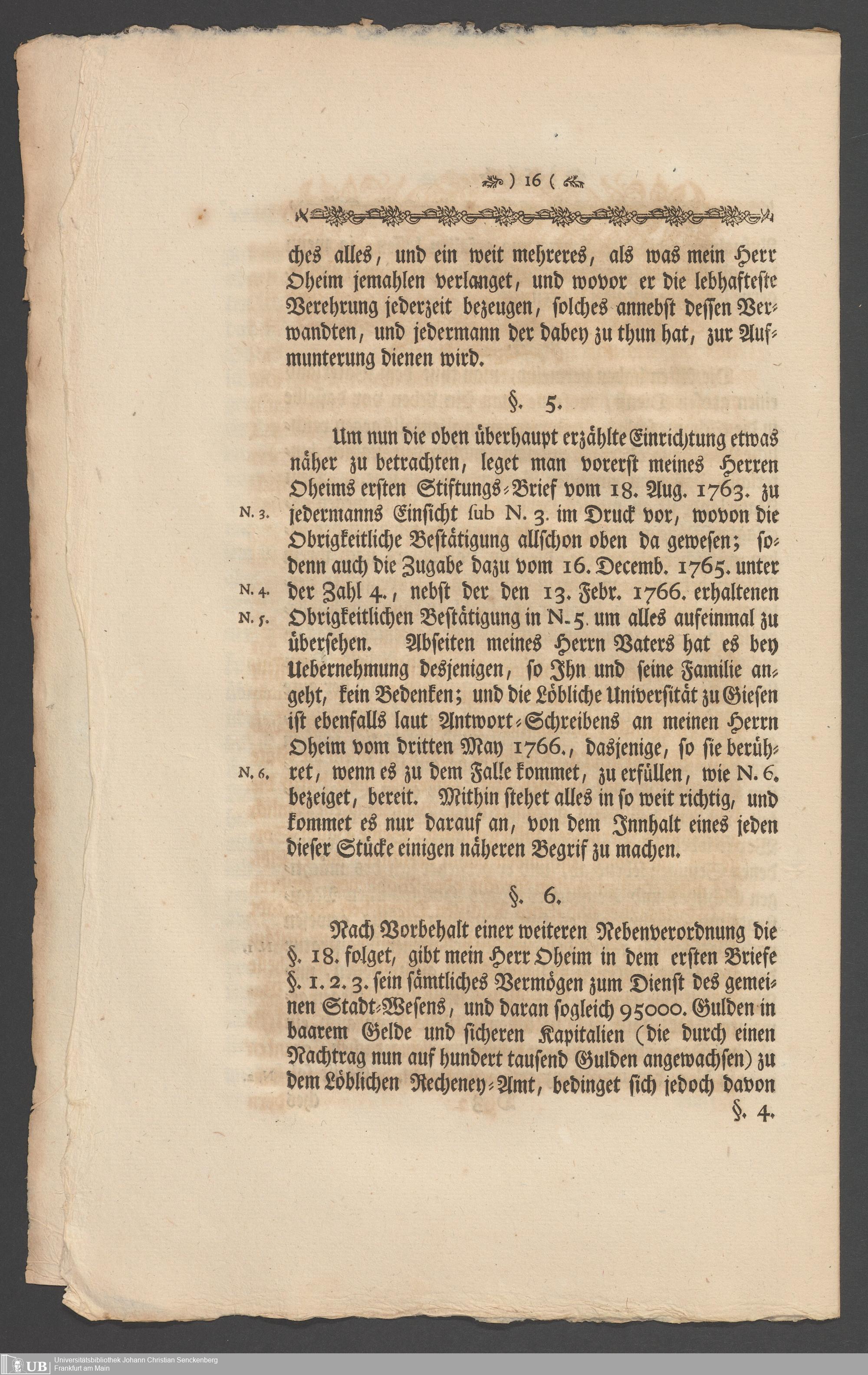 Na 31 Nachlass Johann Christian Senckenberg, 336 - Stiftungsbrief