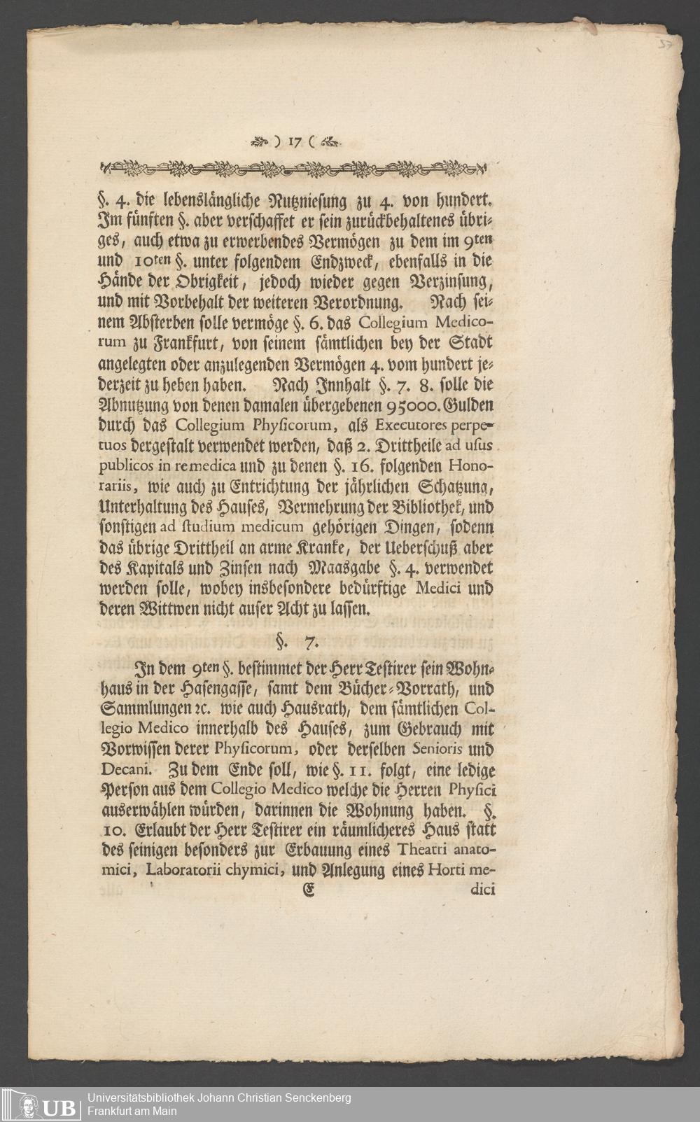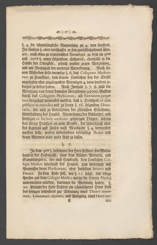 Na 31 Nachlass Johann Christian Senckenberg, 336 - Stiftungsbrief