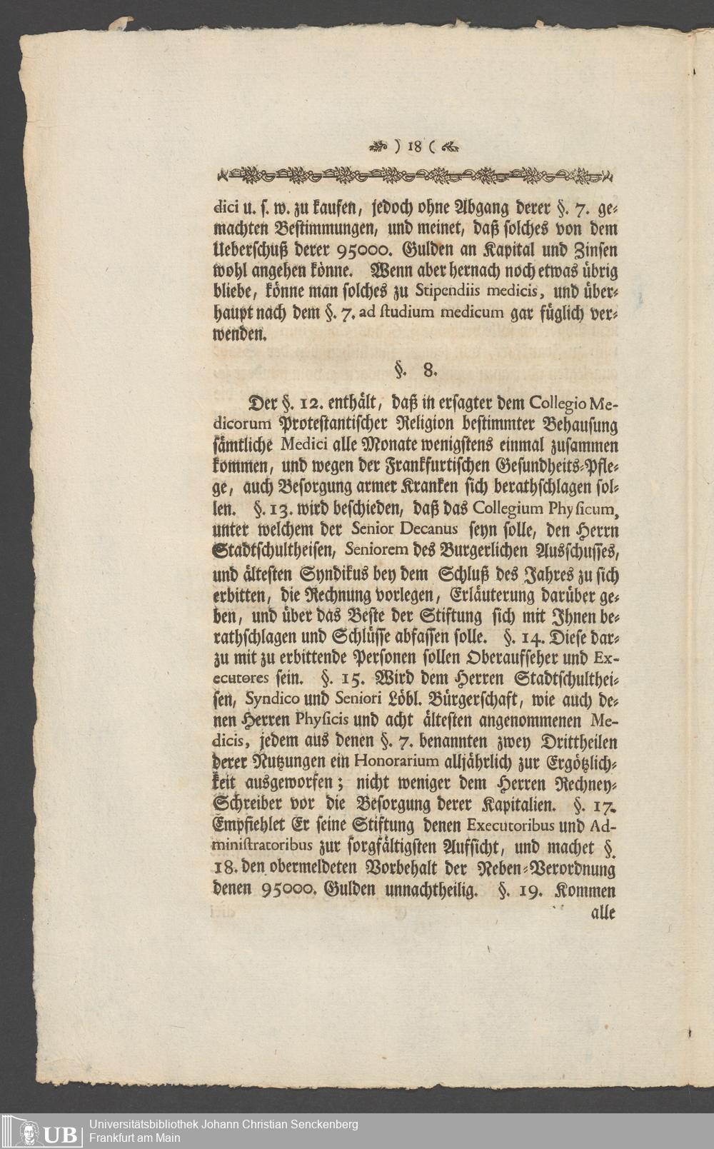 Na 31 Nachlass Johann Christian Senckenberg, 336 - Stiftungsbrief (p. I.5.a.232)