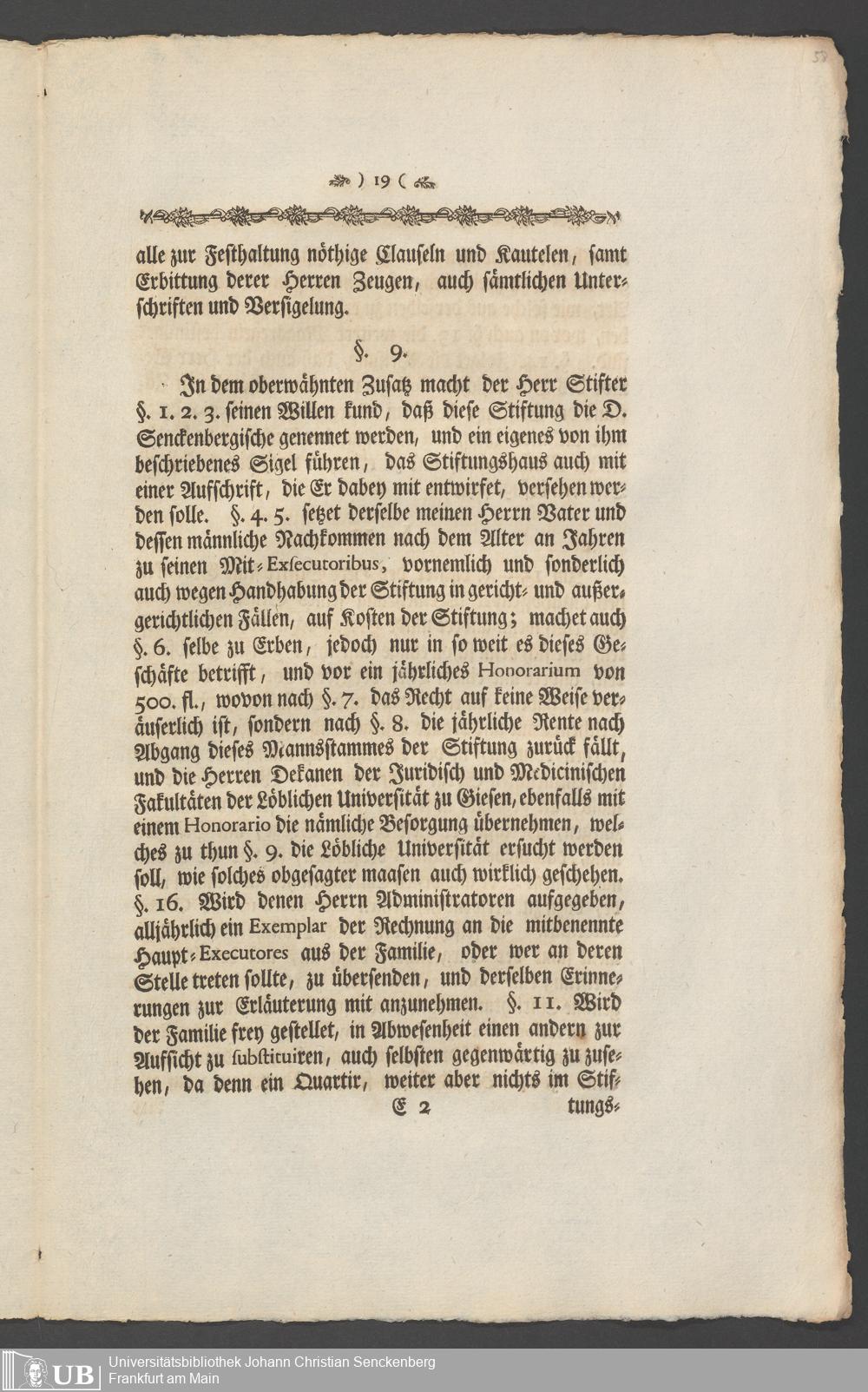 Na 31 Nachlass Johann Christian Senckenberg, 336 - Stiftungsbrief