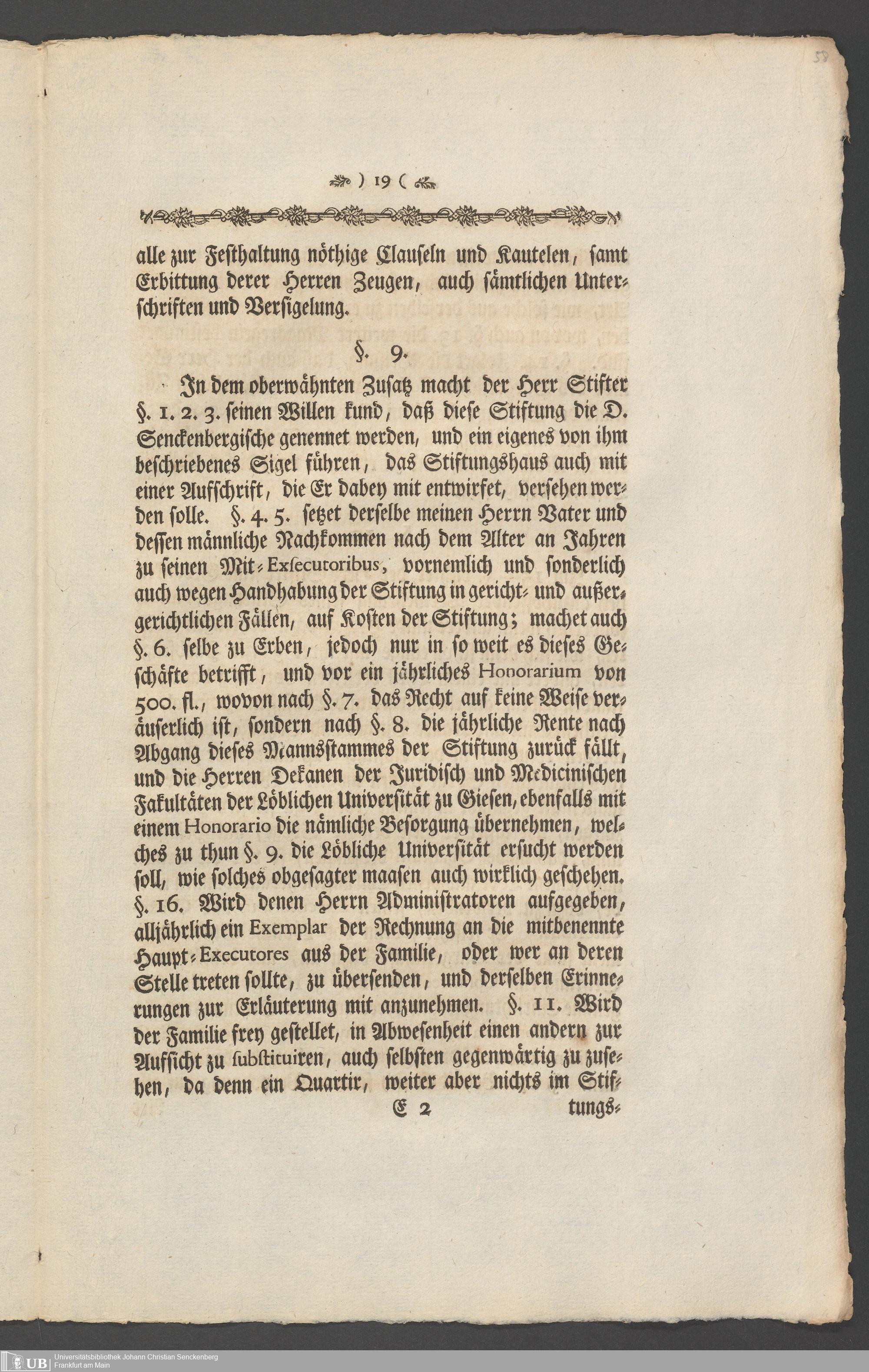 Na 31 Nachlass Johann Christian Senckenberg, 336 - Stiftungsbrief (p. I.5.a.232)