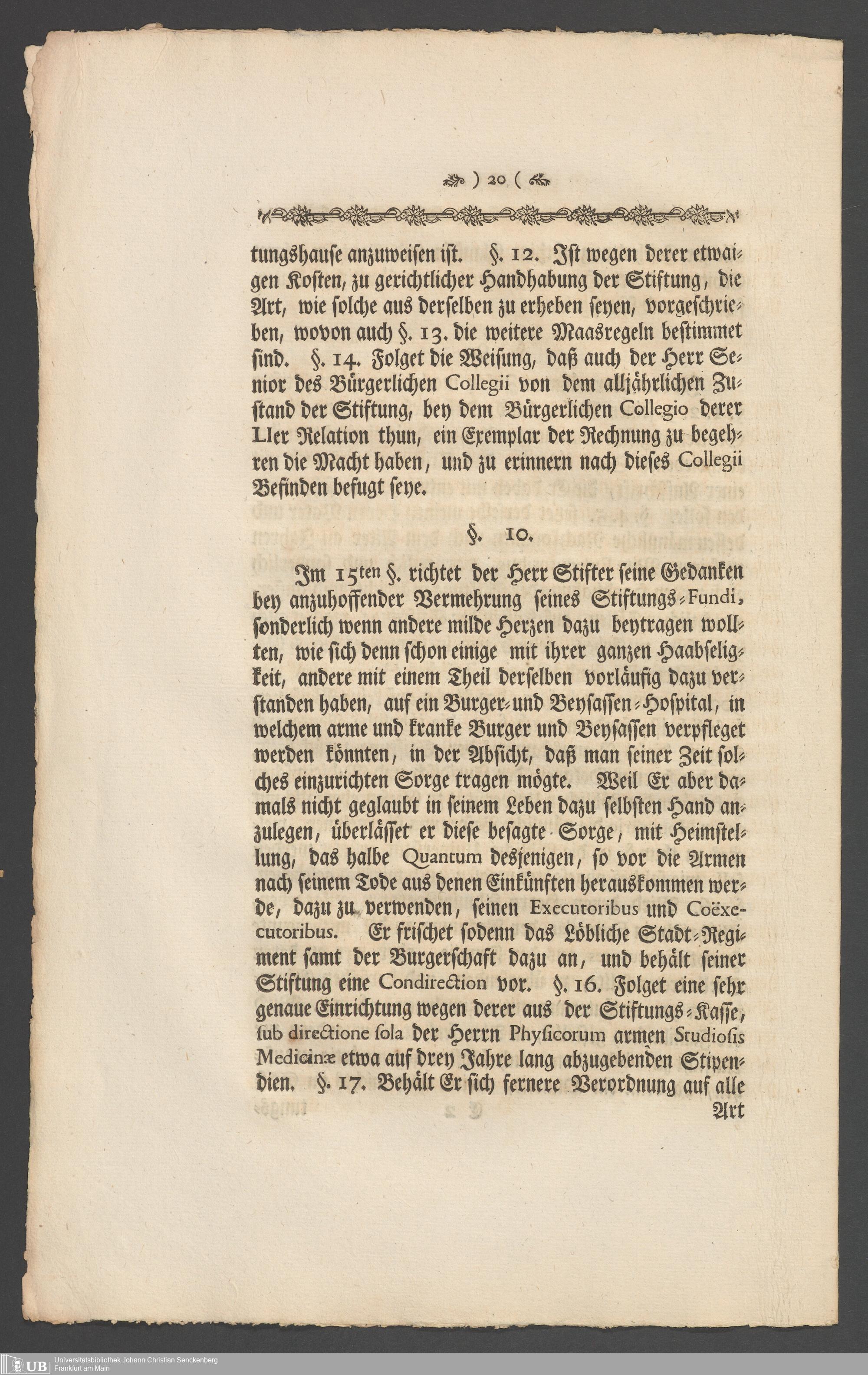 Na 31 Nachlass Johann Christian Senckenberg, 336 - Stiftungsbrief