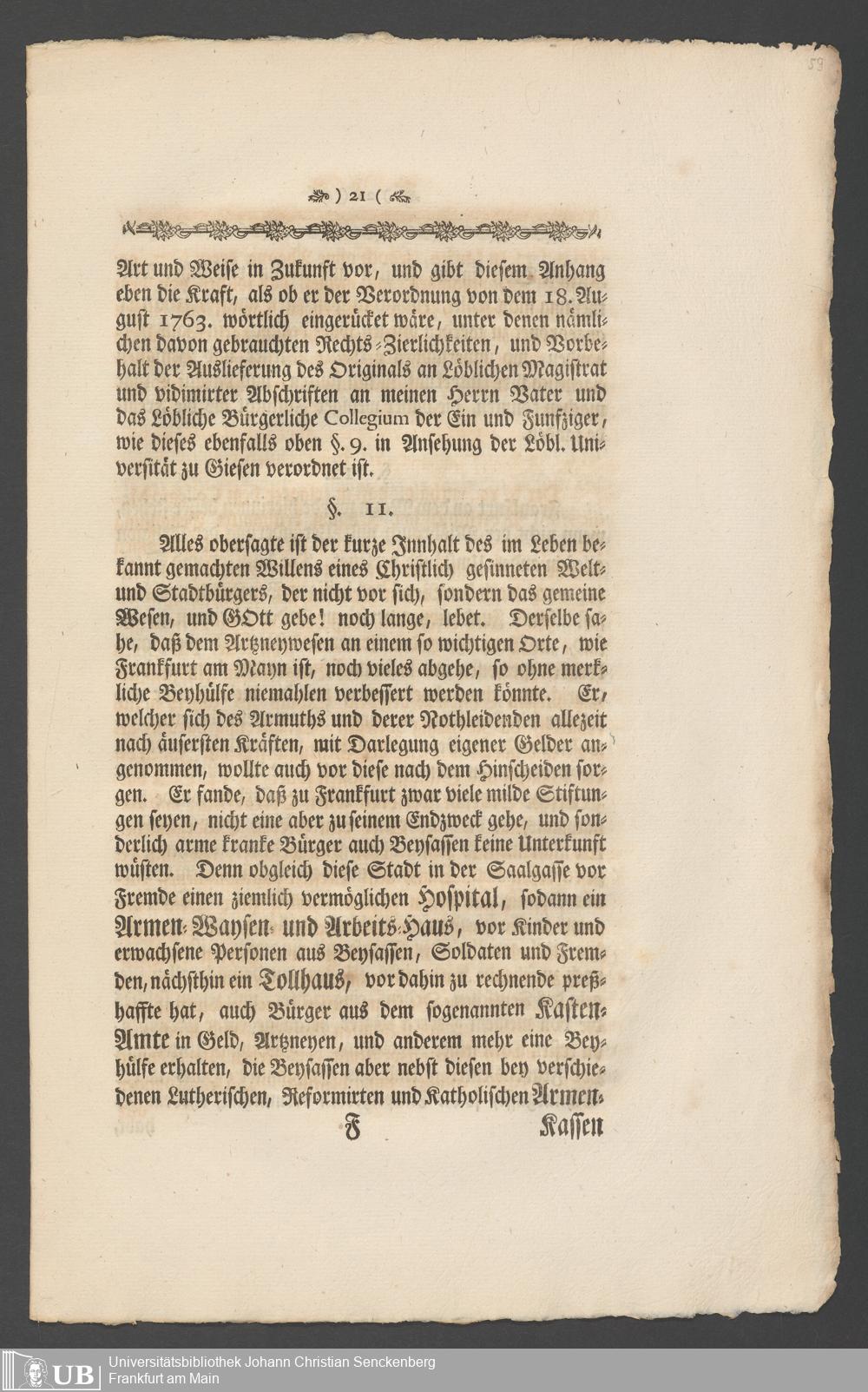 Stiftungs-Briefe zum Besten der Artzneykunst und Armenpflege ; samt Nachricht wegen eines zu unternehmenden Bürger- und Beysassen-Hospitals zum Behufe der Stadt Frankfurt ; nebst Vorbericht Renat Leopold Christian Carl Freyherrn von Senckenberg;