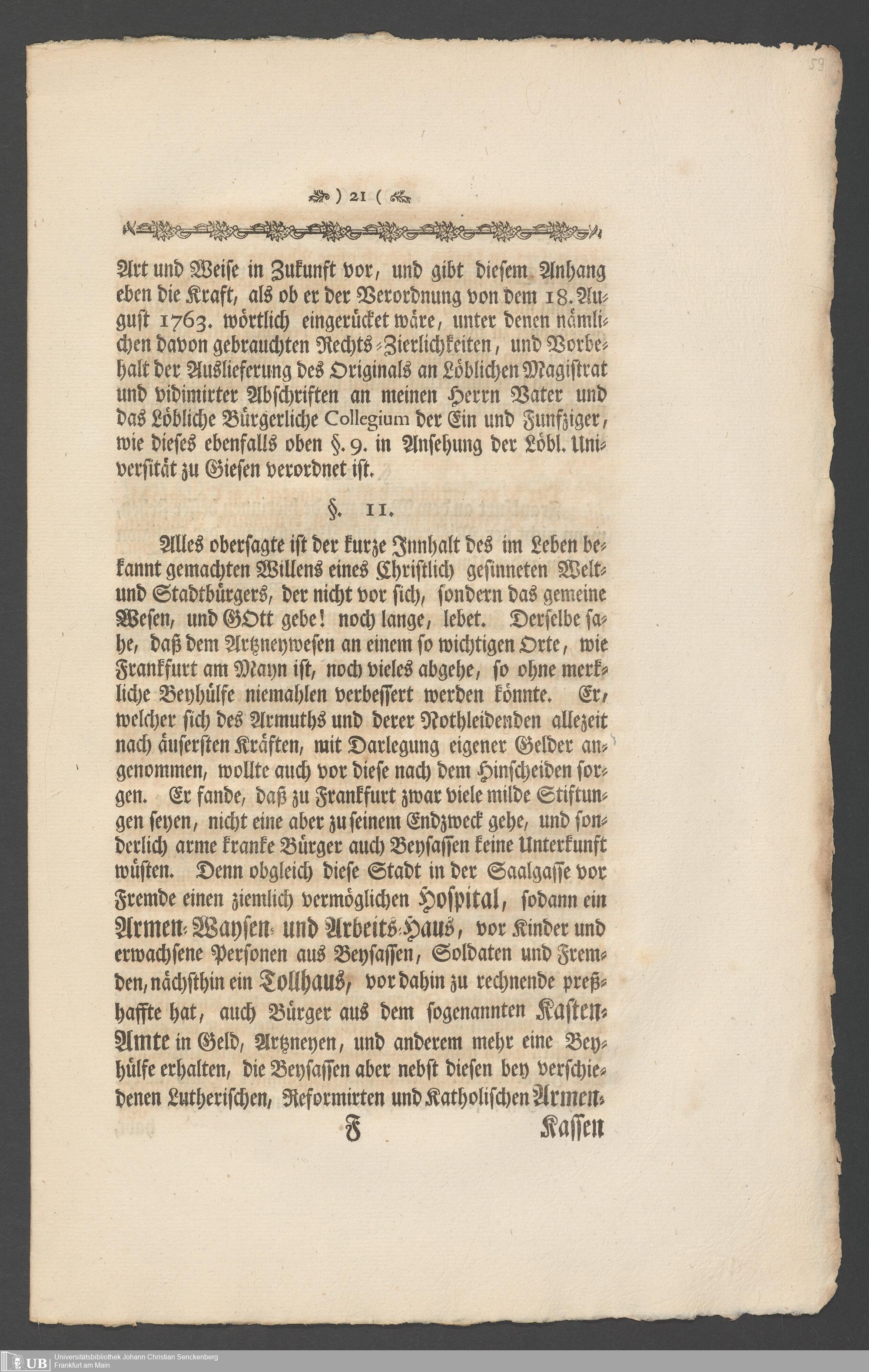 Na 31 Nachlass Johann Christian Senckenberg, 336 - Stiftungsbrief