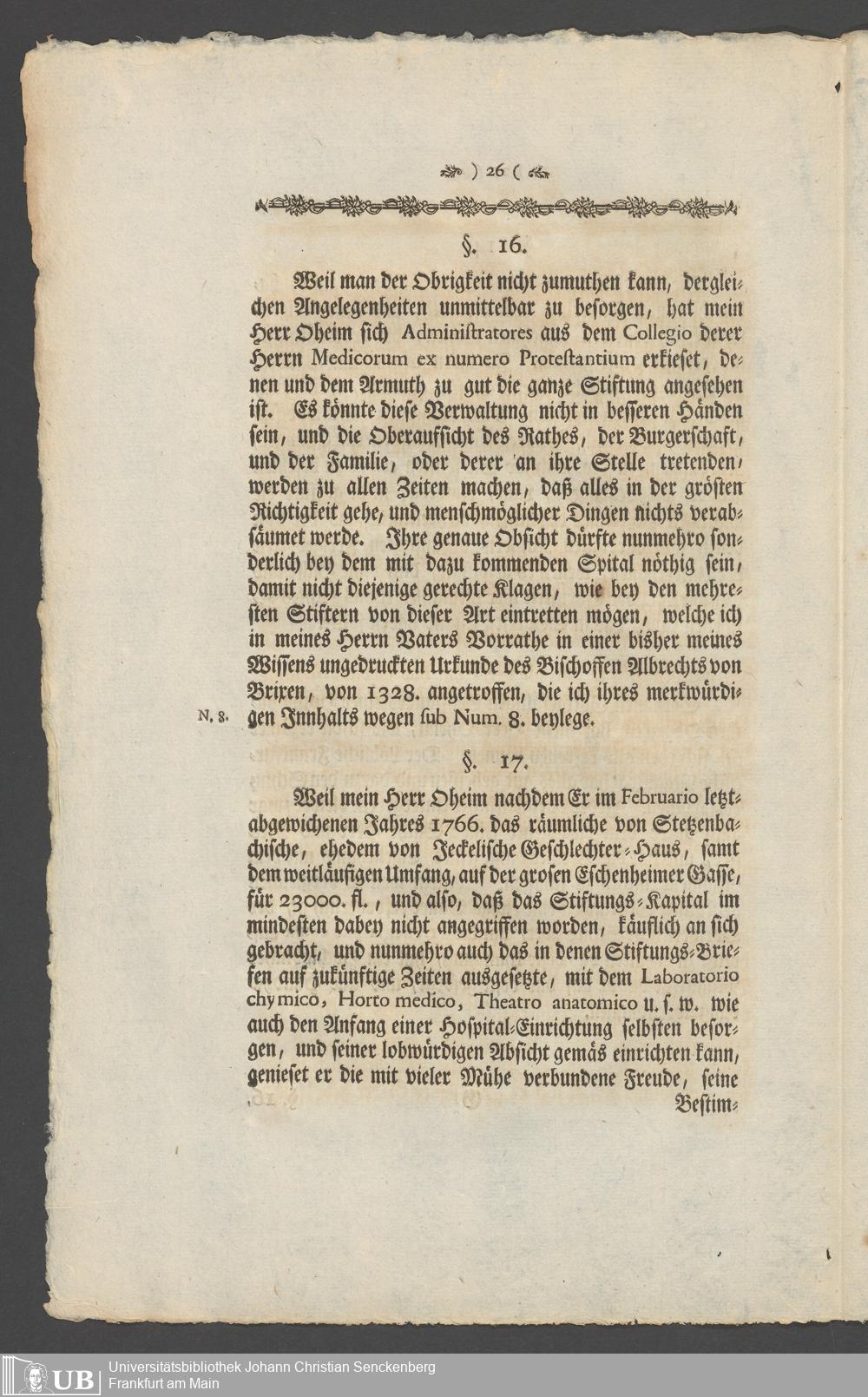 Na 31 Nachlass Johann Christian Senckenberg, 336 - Stiftungsbrief