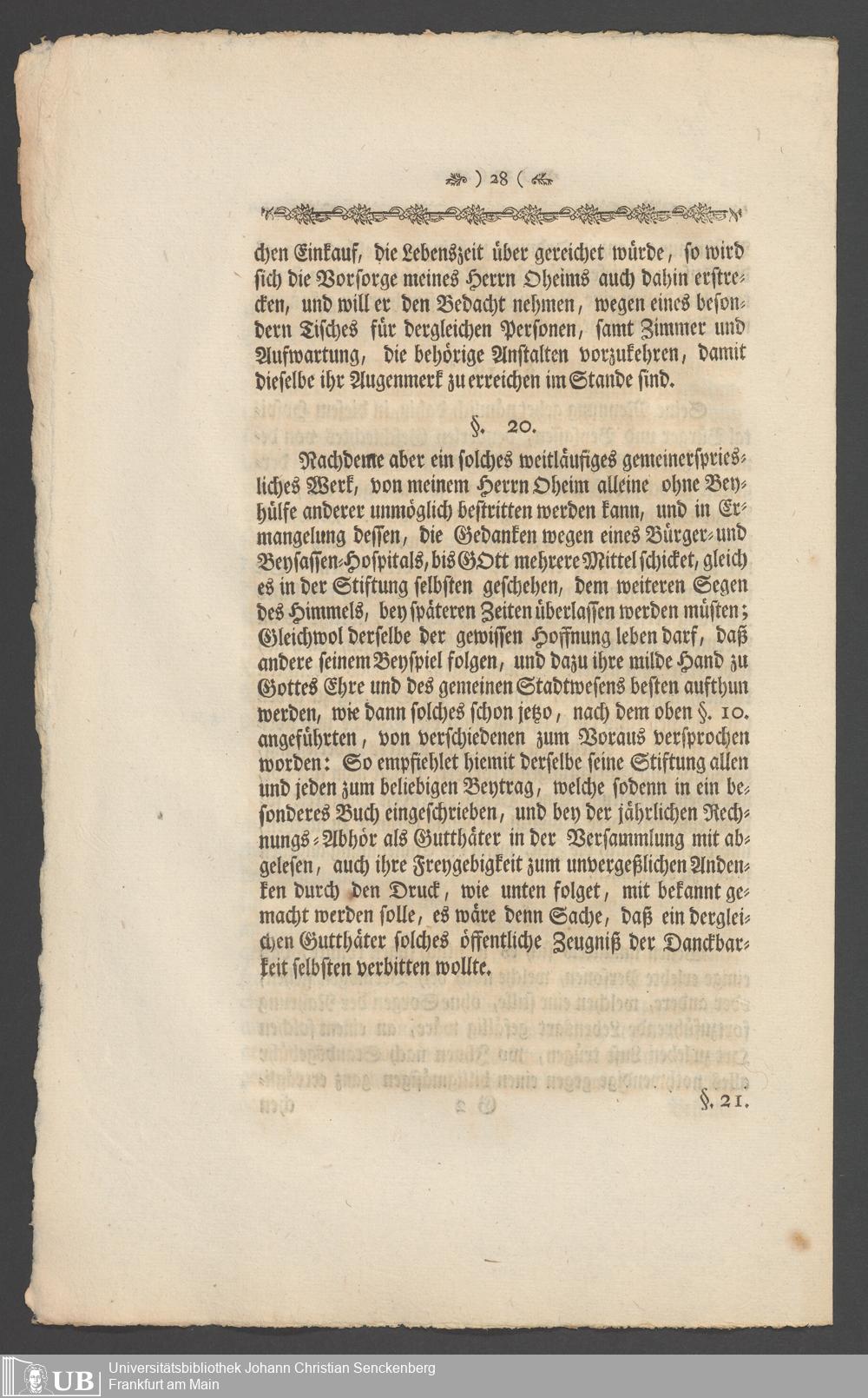 Na 31 Nachlass Johann Christian Senckenberg, 336 - Stiftungsbrief