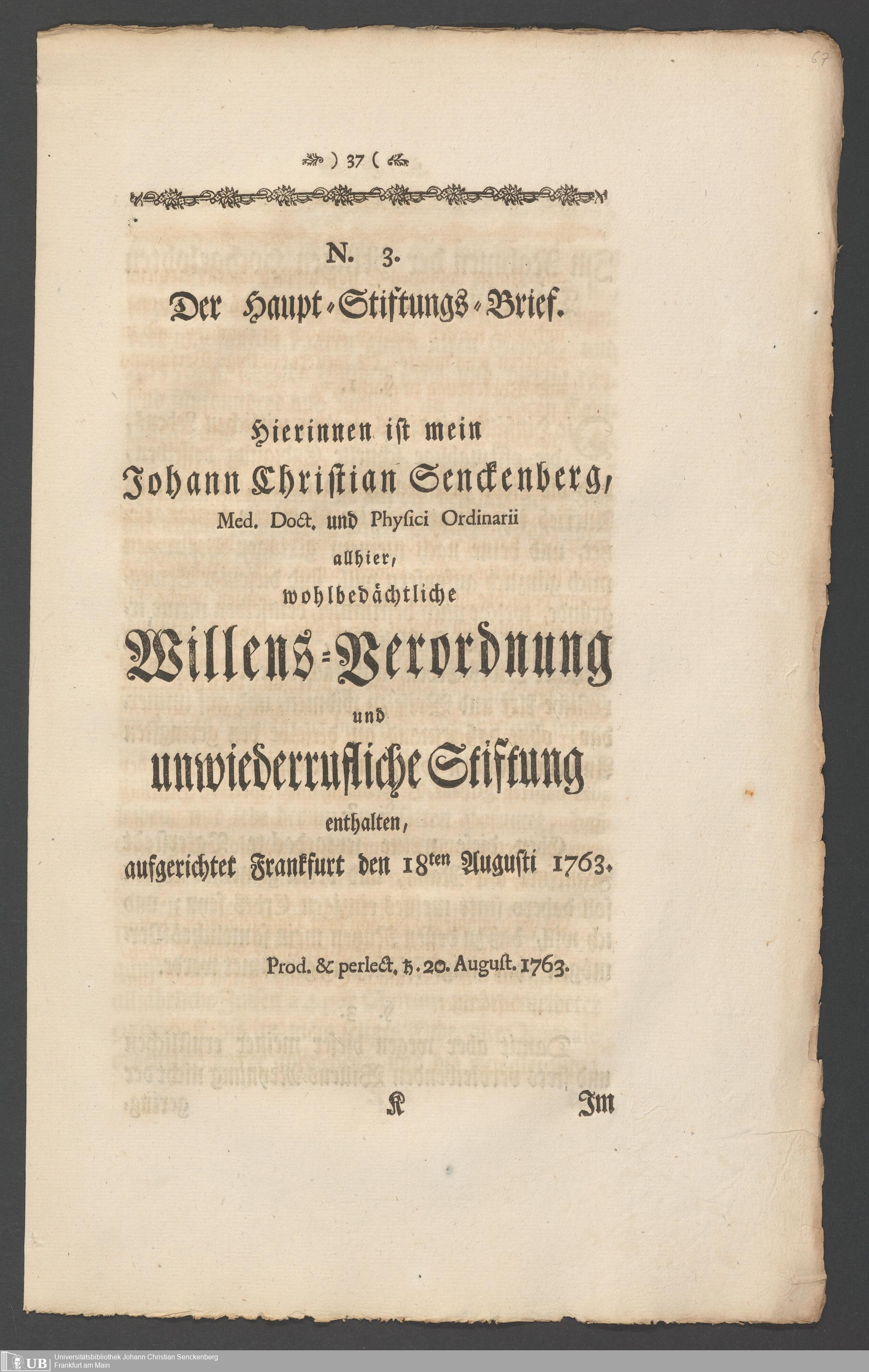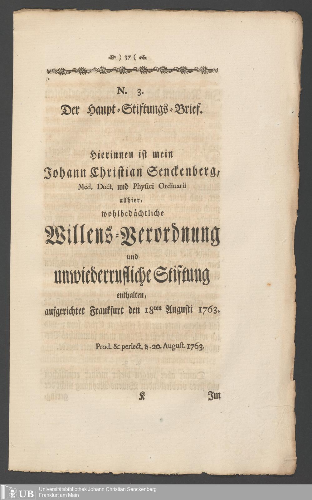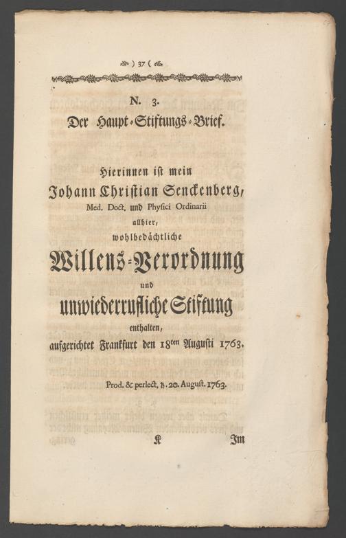 Na 31 Nachlass Johann Christian Senckenberg, 336 - Stiftungsbrief