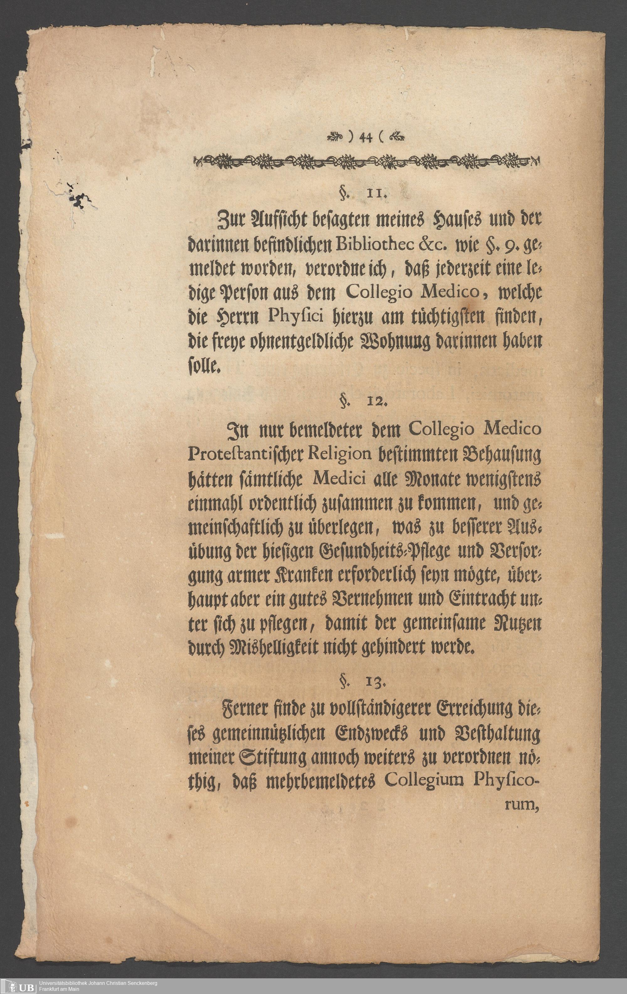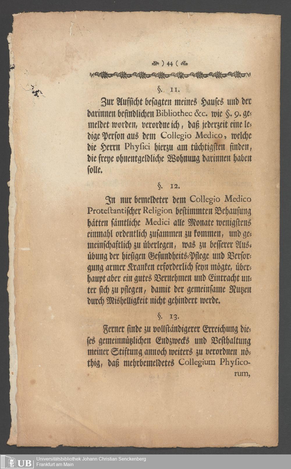 Na 31 Nachlass Johann Christian Senckenberg, 336 - Stiftungsbrief
