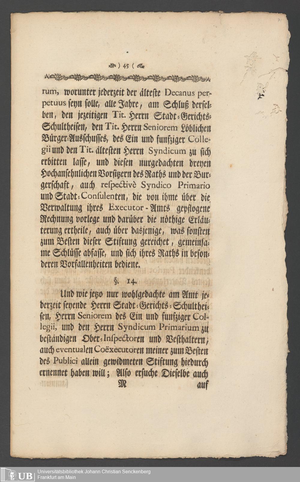 Na 31 Nachlass Johann Christian Senckenberg, 336 - Stiftungsbrief