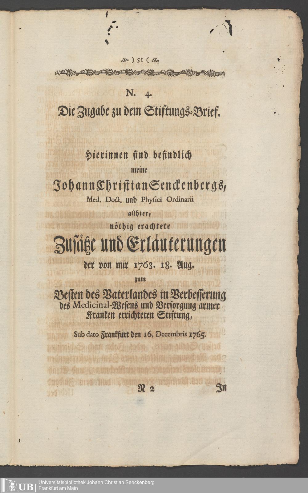 Na 31 Nachlass Johann Christian Senckenberg, 336 - Stiftungsbrief