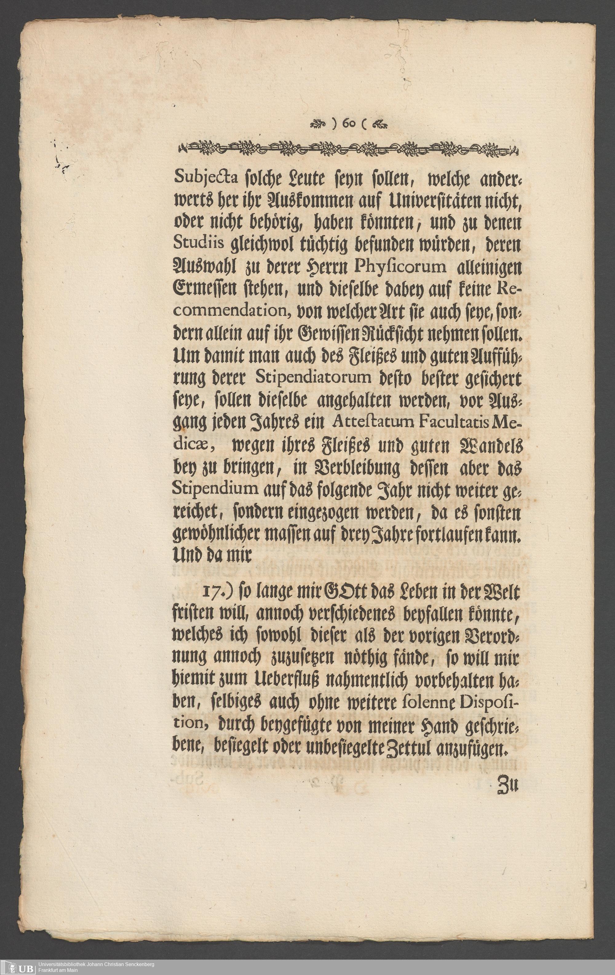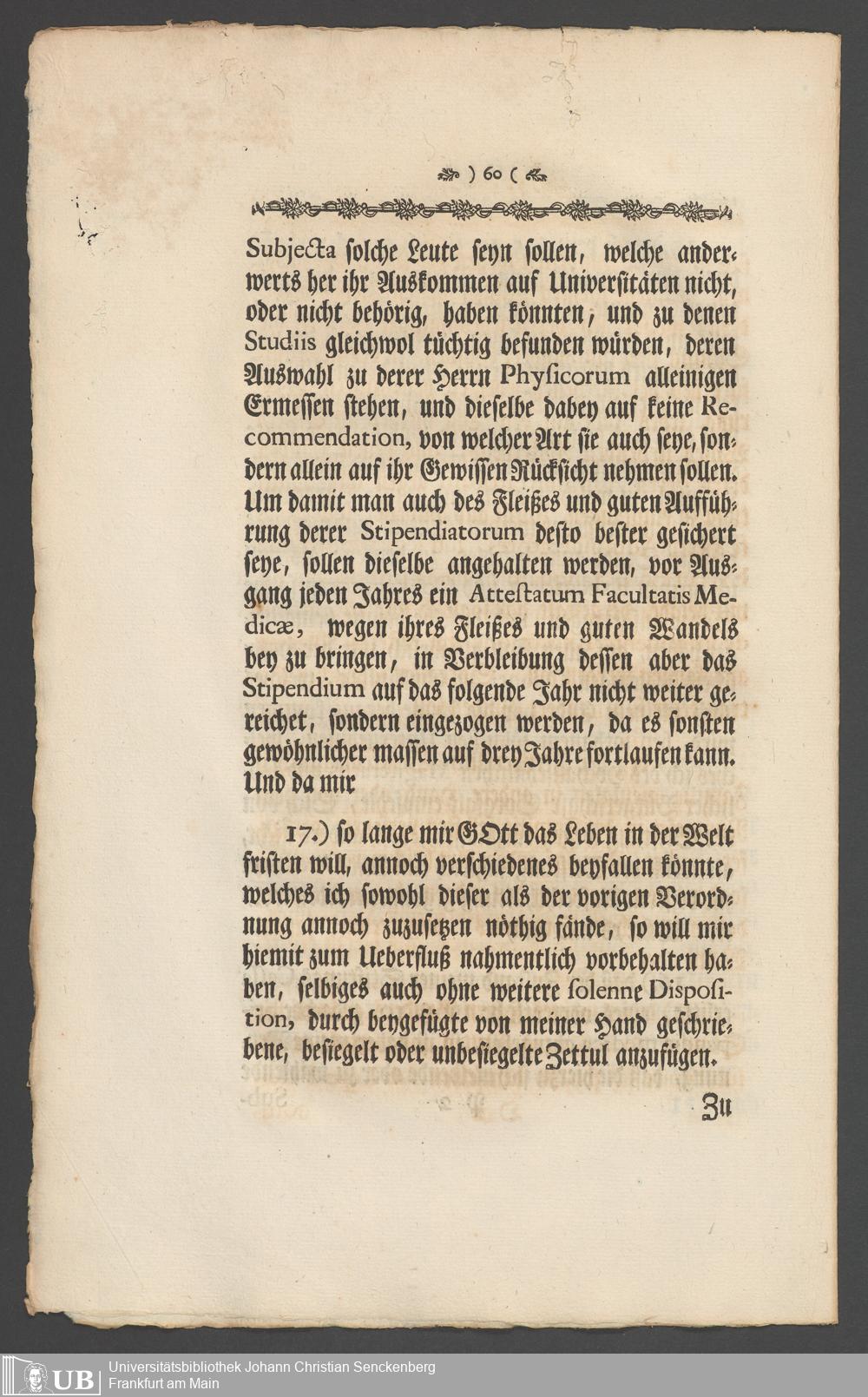 Na 31 Nachlass Johann Christian Senckenberg, 336 - Stiftungsbrief
