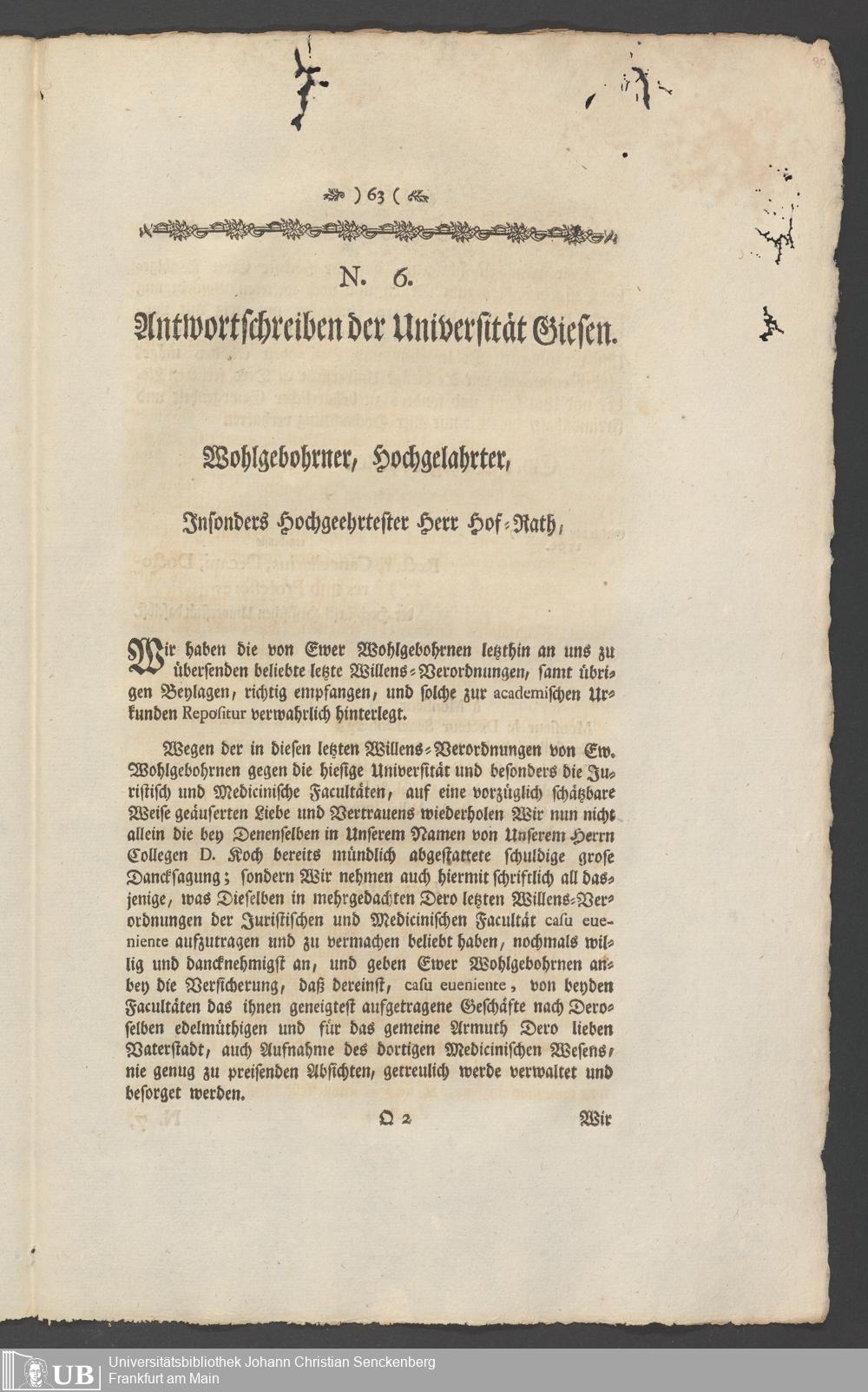 Na 31 Nachlass Johann Christian Senckenberg, 336 - Stiftungsbrief