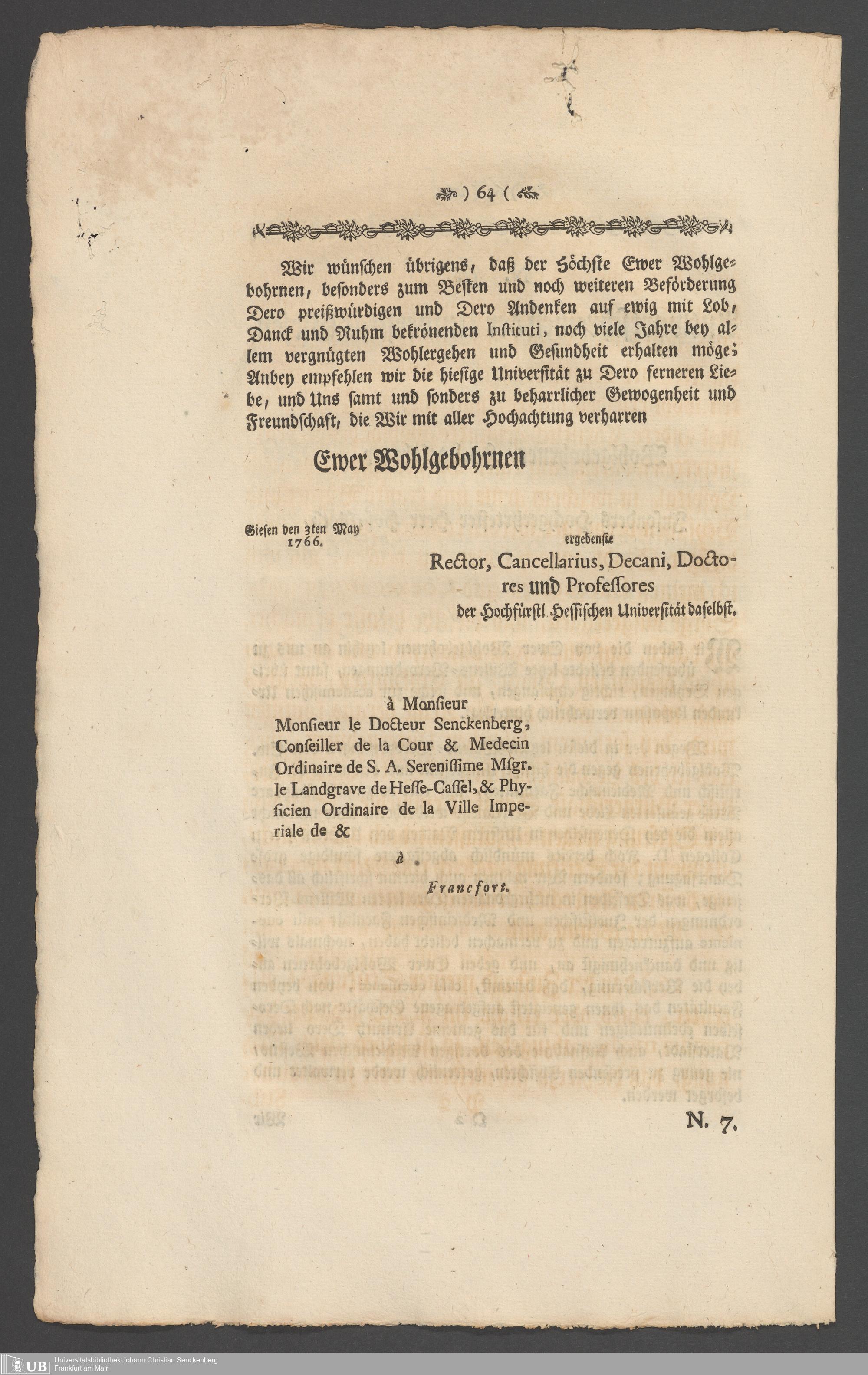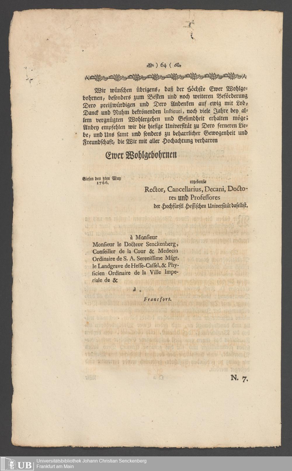 Na 31 Nachlass Johann Christian Senckenberg, 336 - Stiftungsbrief