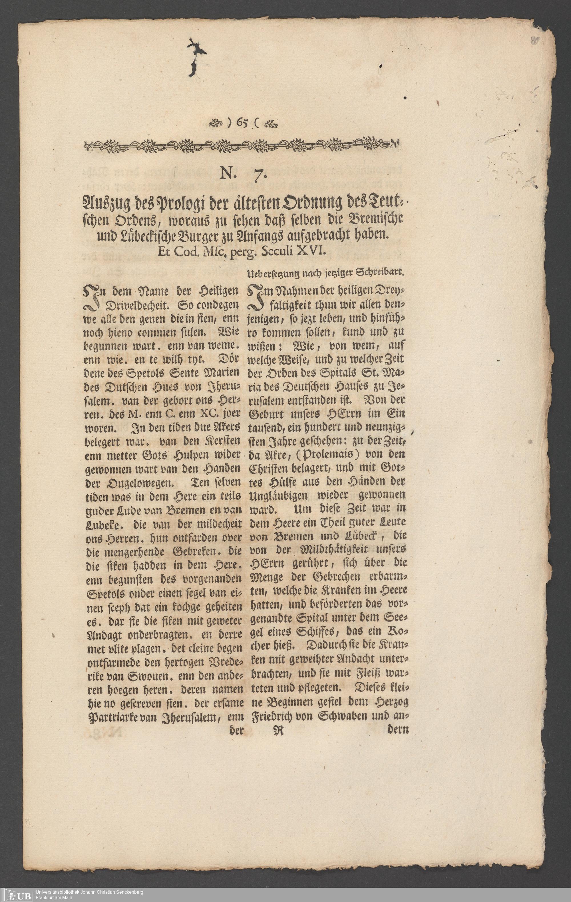 Na 31 Nachlass Johann Christian Senckenberg, 336 - Stiftungsbrief