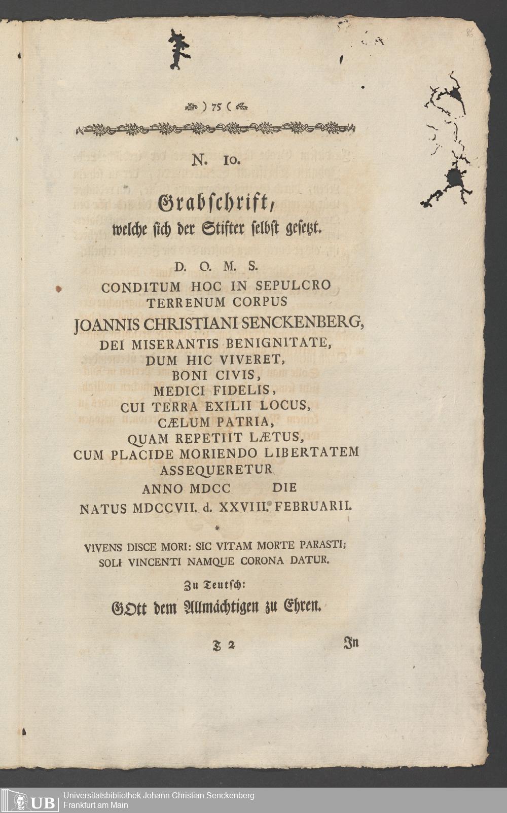 Na 31 Nachlass Johann Christian Senckenberg, 336 - Stiftungsbrief