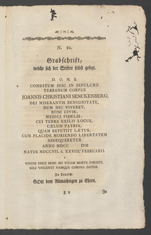 Nachlass Johann Christian Senckenberg