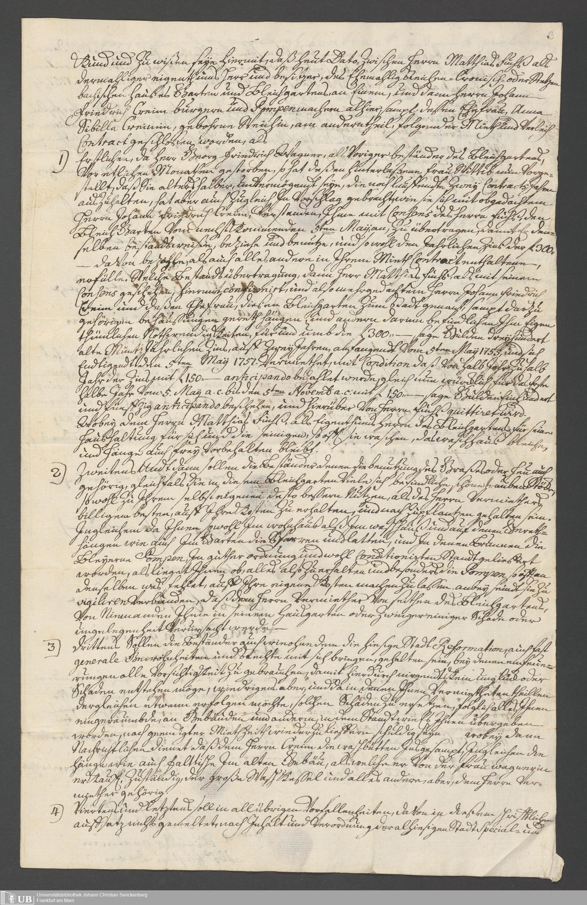 Na 31 Nachlass Johann Christian Senckenberg, 337 - Verträge über den Kauf des de-Werderschen Hauses